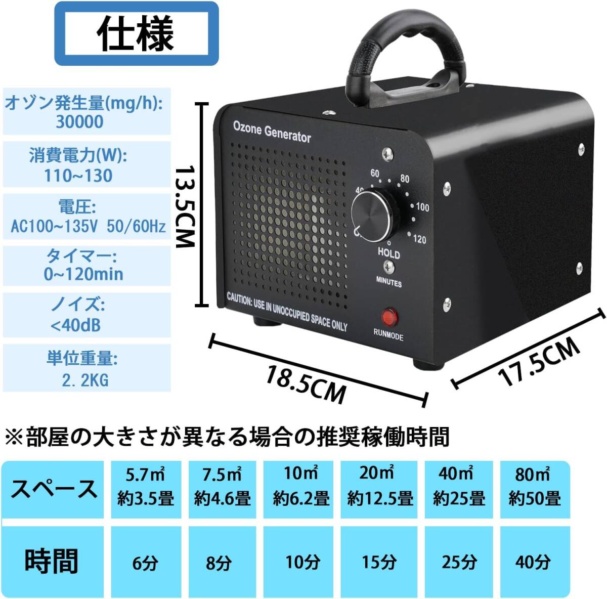 オゾン発生量:30000mg/h