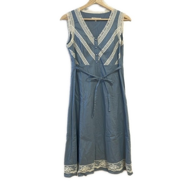 ローラアシュレイ LAURAASHLEY サイズ7 S - ライトブルー×白 レディース ノースリーブ/ロング/レース ワンピース