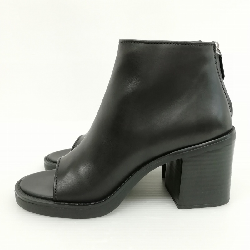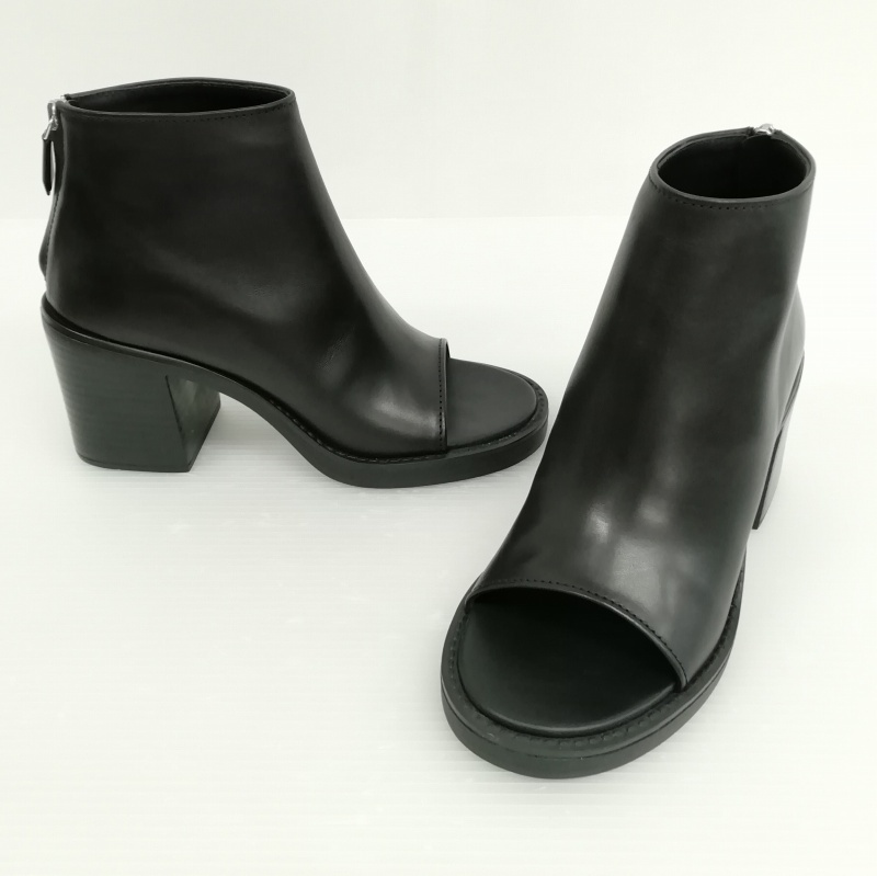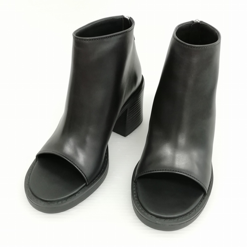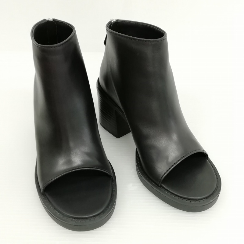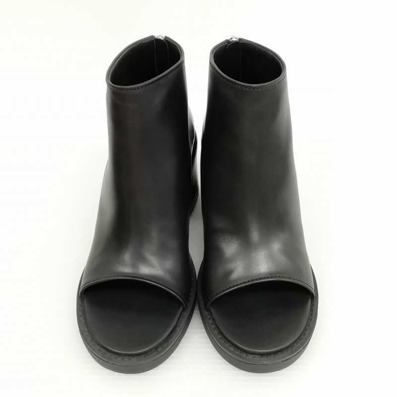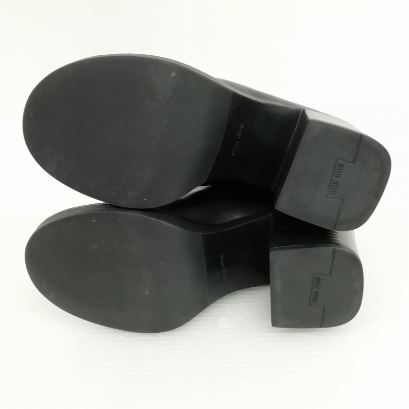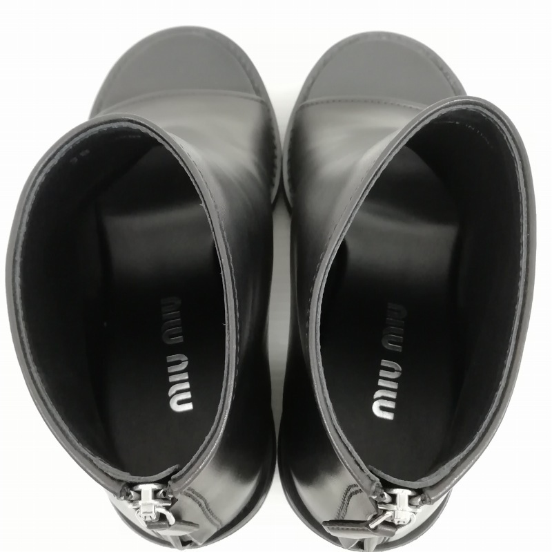 ミュウミュウ miumiu 5TK058 レザー オープントゥ ブーティー ショートブーツ 極美品 38 ブラック レディース