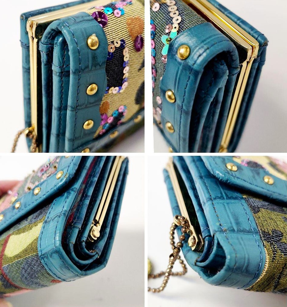 | シンクビーのがま口財布です。 ビーズとスパンコールの装飾が施された三つ折り財布です。 =============== ●素材:牛革(型押し)・ビスコース71%・アクリル23%・ポリエステル3%・ナイロン3% ●裏地=ポリエステル100% ●装飾:ビーズ・スパンコール ●サイズ:約約12.5×10×3.5cm ●小銭入れ×1(仕切りあり) ●札入れ×2 ●カードポケット×8 ●フリーポケット×3 ●ハートのチャーム付き =============== ※がま口しっかりと閉まります。 ※ほぼ未使用の大変綺麗な状態です。 ★開いて発送致します。(10枚目画像参照)ご了承下さいませ。 kiware(kikuware)7.6 | |||