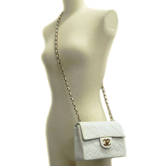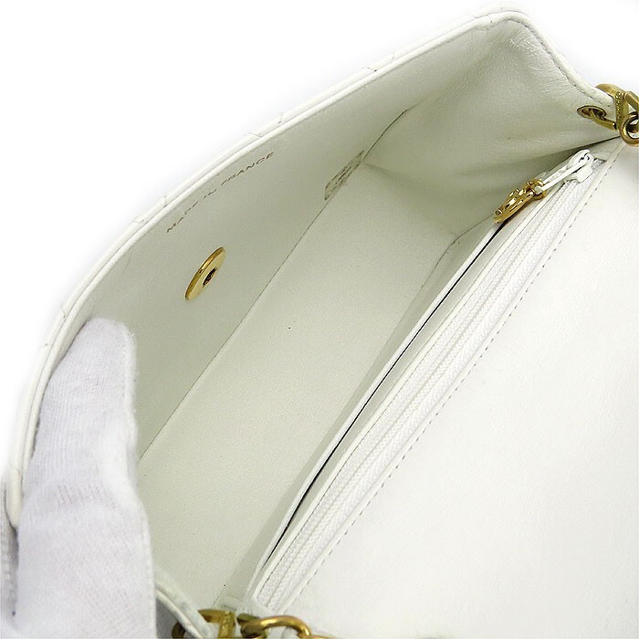 商品名 | 送料無料【シャネル】CHANEL ミニマトラッセ ラムスキン 白 ゴールド金具 ココマーク チェーンショルダーバッグ 斜め掛け 66-0073 |
