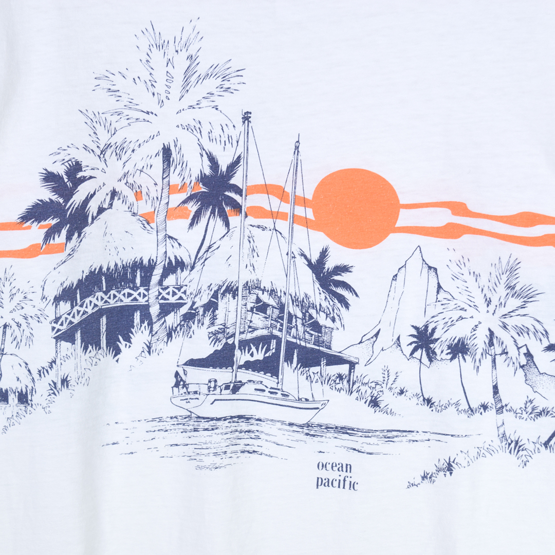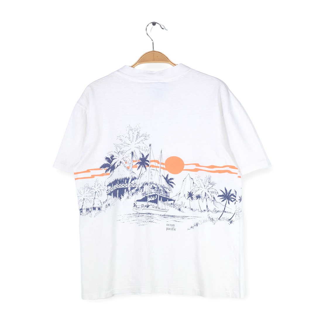 70s オーシャンパシフィック USA製 ヴィンテージTシャツ オールドサーフ 風景画 波タグ OP メンズM 古着 @BZ0438