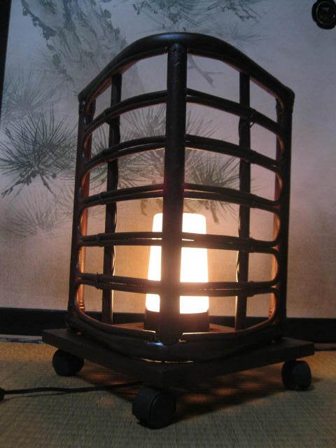 <昭和レトロ創作ラタン行燈手塗り塗装ワインブラウン籐>