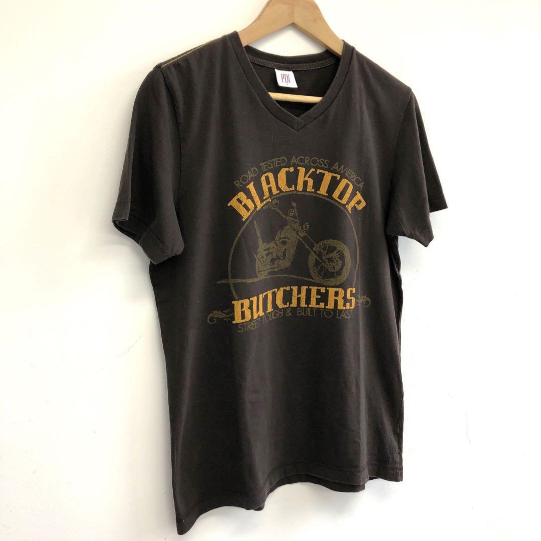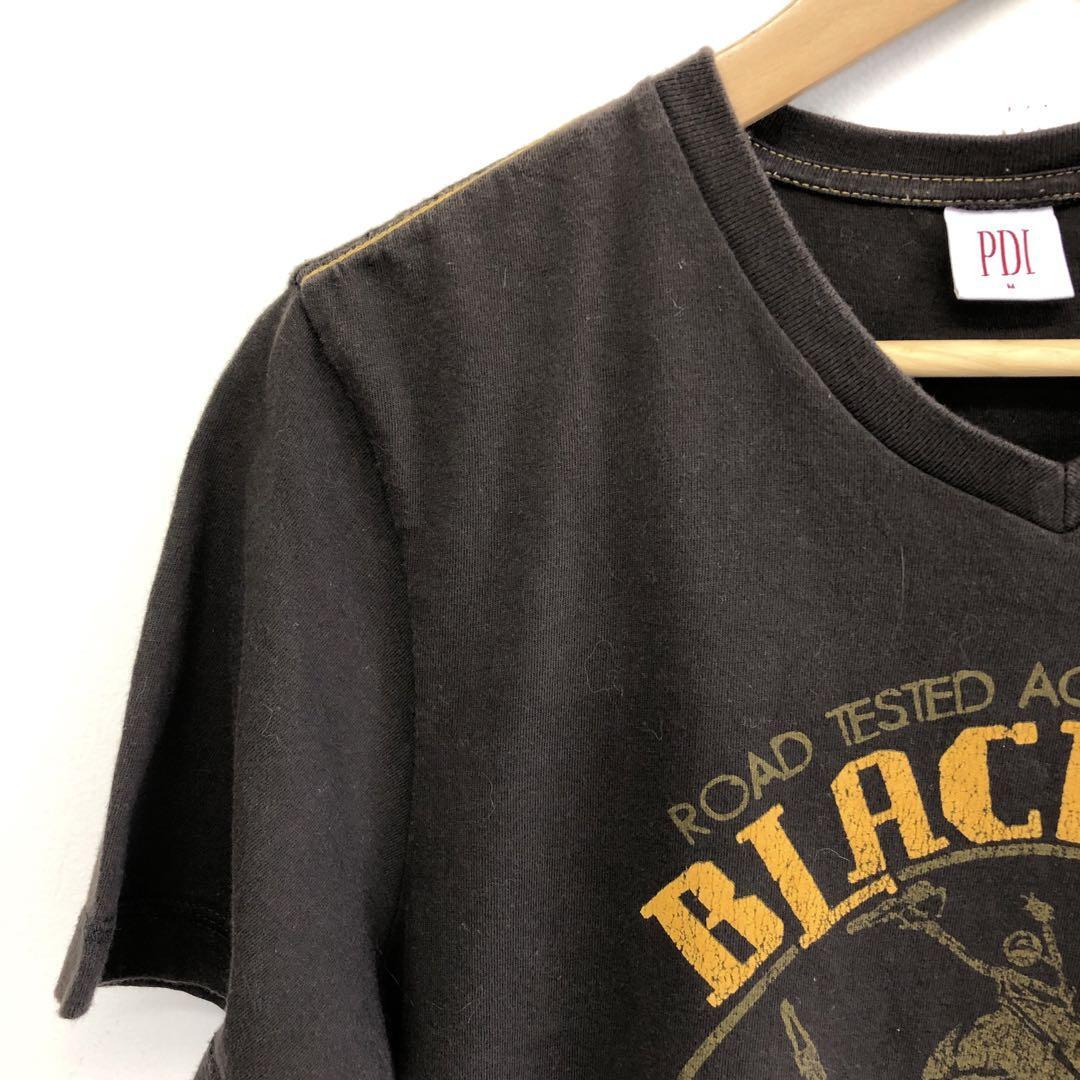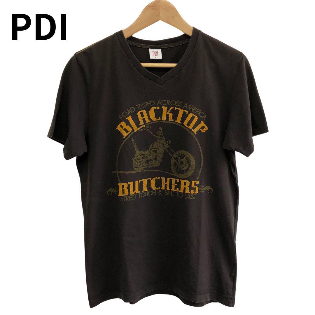 PDI Tシャツ バイク 半袖 ブラウン Vネック プリント ロゴ メンズ M