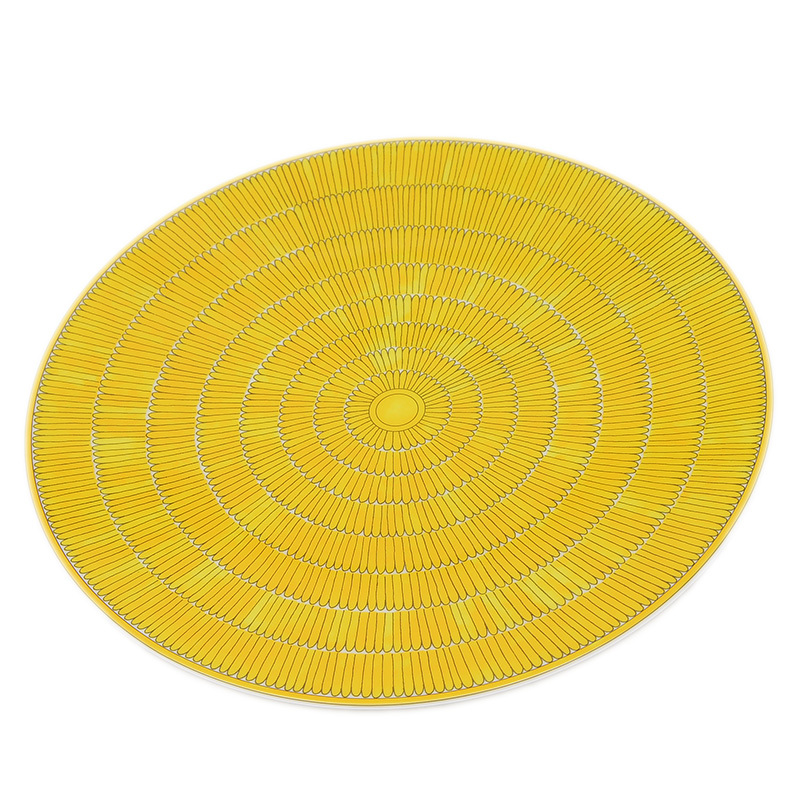商品特徴 | 地中海の太陽から着想を得た、エルメスのテーブルウェアコレクションです。白磁に深みのあるイエローのグラデーションと、ヤシの葉や花を思わせるグラフィカルなモチーフが特徴。食卓を明るく華やかに彩り、エレガントな雰囲気を演出します。 |