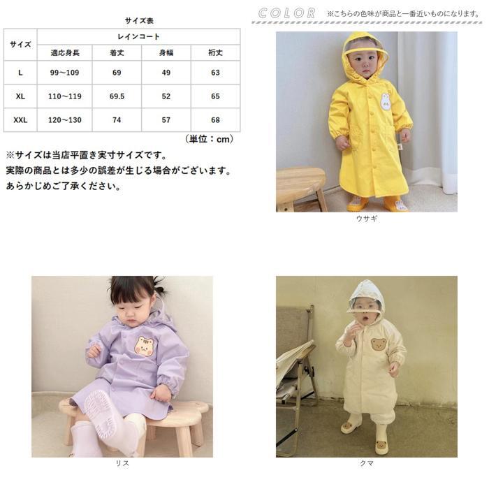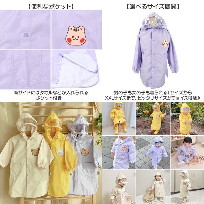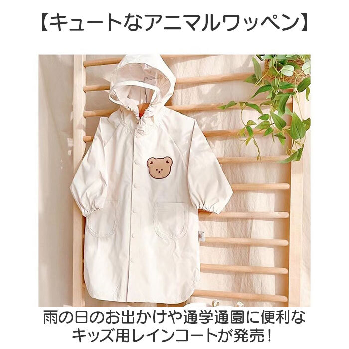 商品説明 | ・・【キュートなアニマルワッペン】 ・雨の日のお出かけや通学通園に便利なキッズ用レインコートが発売! ・【ゆったりとしたデザイン】 ・コート背中部分にはマチを設け、歩きにくい雨の日もストレスフリー。 ・【雨風をシャットアウト】 ・袖口や首元はゴム入りでやさしくフィットし、雨からしっかりガード。 ・【着脱も簡単】 ・小さなお子様でも脱ぎ着がしやすい、スナップボタン式。 ・【透明窓付き】 ・フードのツバ部分には透明窓が付いているので、視界を遮る心配なし! ・【便利なポケット】 ・両サイドにはタオルなどが入れられるポケット付き。 ・【選べるサイズ展開】 ・男の子も女の子も着られるLサイズからXXLサイズまで、ピッタリサイズがチョイス可能♪ |