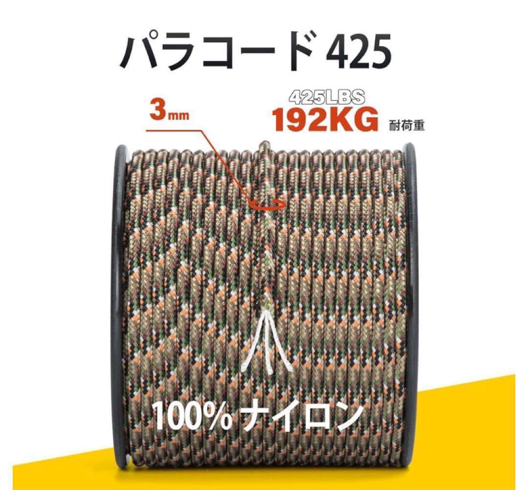 【高い実用性】アウトドアに適しています:テント、キャンプ、ボート、狩猟、災害準備、防虫袋、などです。また、ひも、ブレスレット、キーホルダー、愛犬の首輪とリード、ベルト、腕時計のバンドなどのクラフト用途にも適しています。