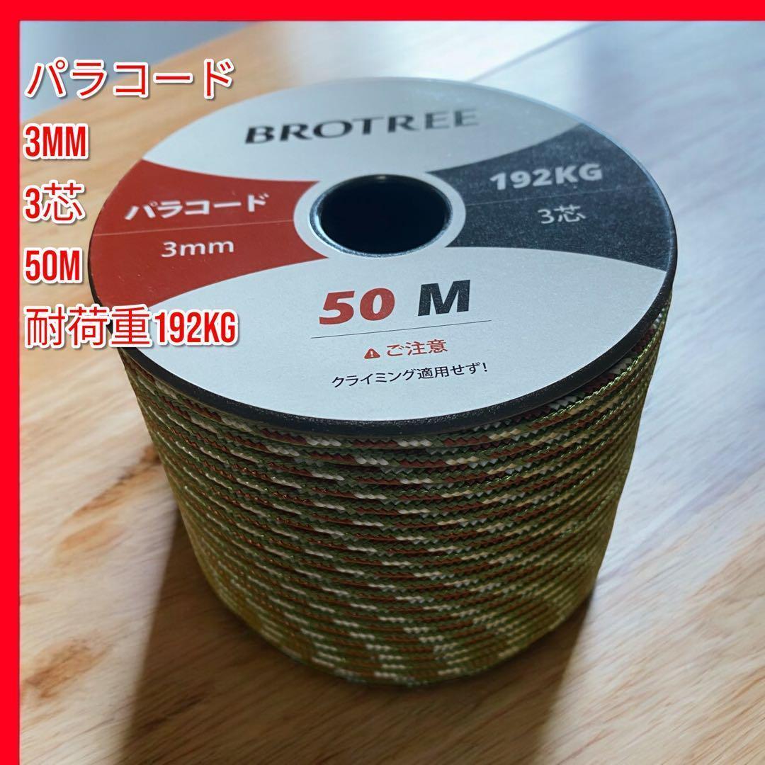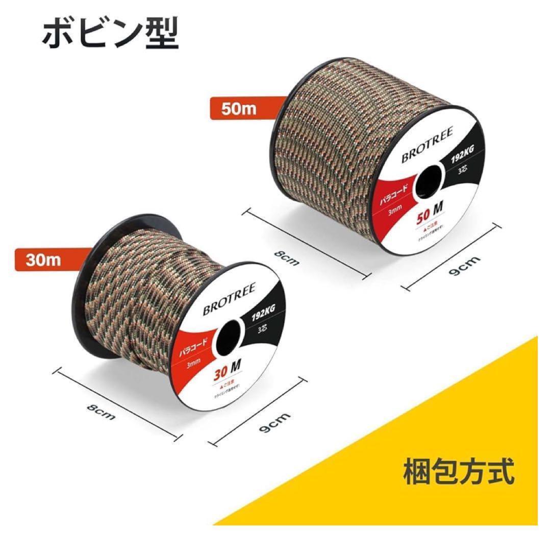Brotree パラコード 3mm 3芯 ガイロープ 反射 30m/50m テントロープ パラシュートコード 耐荷重192kg キャンプ サバイバル アウトドア DIY編む用