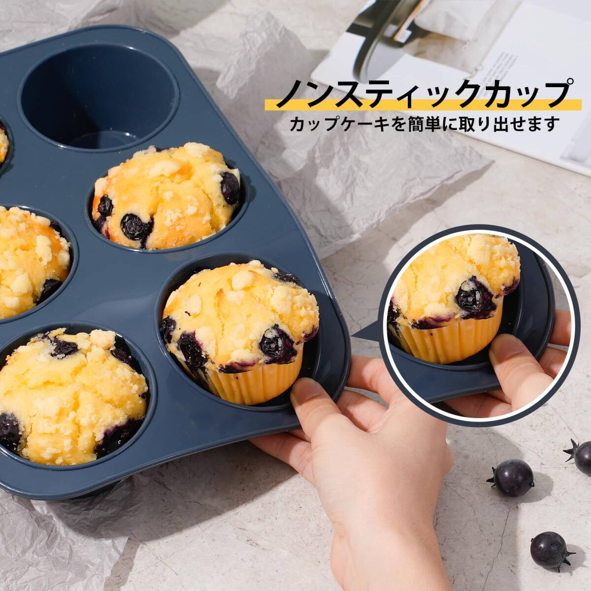 【食品グレード素材】このシリコーンマフィン型は、BPAフリーの食品グレードのシリコーンで作られています。 ひび割れなし、無臭、無害。 マフィントレイは、-40°F〜450°f(-40°C〜230°C)の温度で使用でき、オーブン、電子レンジ、食器洗い機、冷凍庫に適しています。