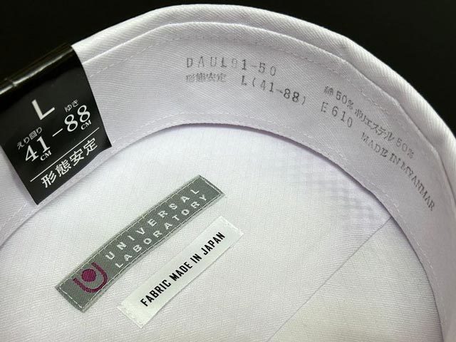 DAUL91-50-E610‐長68■L(えり回り41-ゆき88)長袖ドレスシャツUNIVERSAL LABORATORYワイシャツ形態安定スッキリシルエット