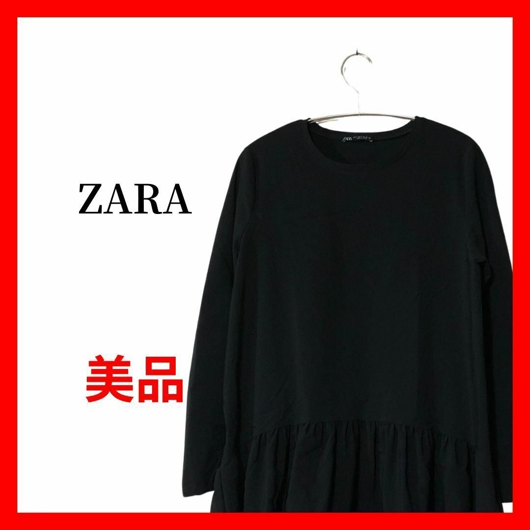 ZARA ティアードミニワンピース 黒 Sサイズ 長袖 B1834