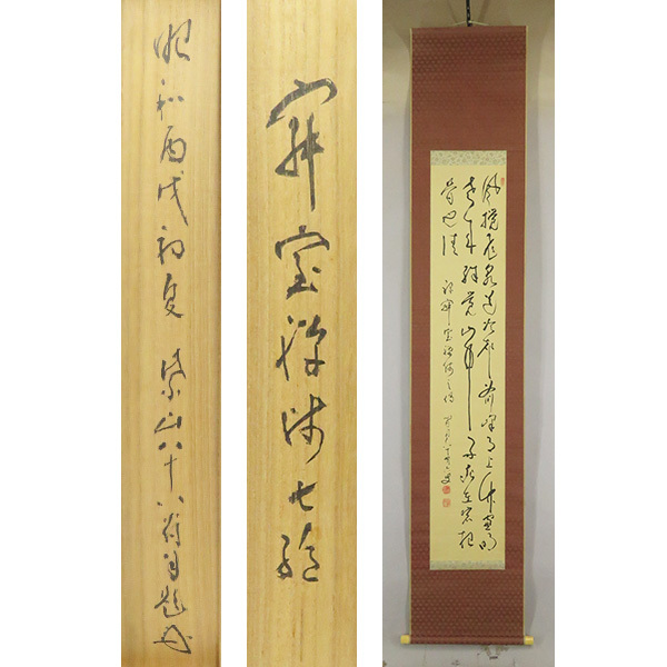 B-5360【真作】足利紫山② 紙本 三行書 共箱 二重箱 掛軸/臨済宗方広寺派管長 臨済宗初代管長 尾張 師・荻野独園 墨蹟 書画
