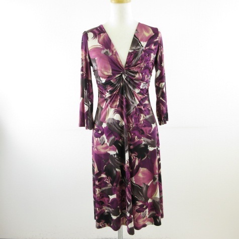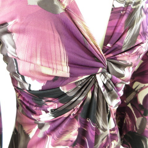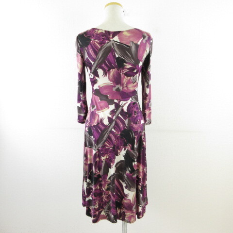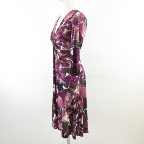 TOUCH9 ワンピース 七分袖 ミニ 花柄 紫 L *T356 レディース