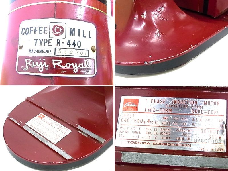 e13961 東芝 R-440 FUJI ROYAL TOSHIBA 業務用 電動コーヒーミル 豆挽き コーヒー豆 珈琲 動作確認済