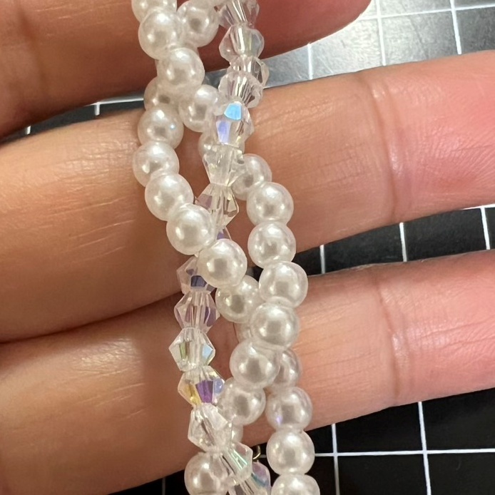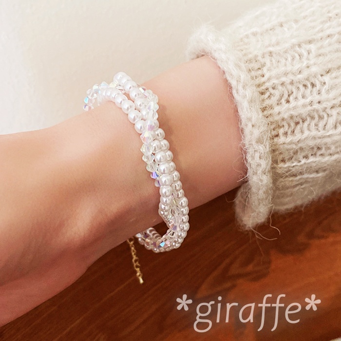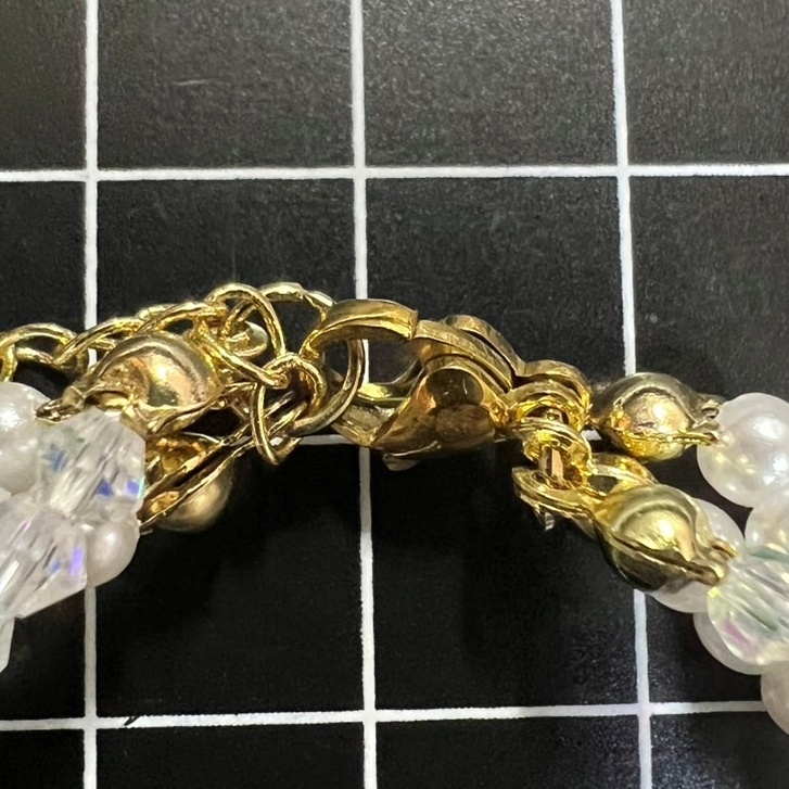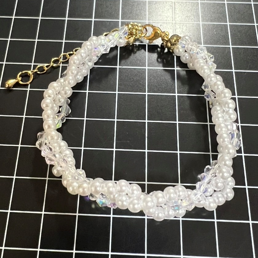 D089 匿名配送 ブレスレット レディース パール クリスタル 三蓮 編込み ゴールド