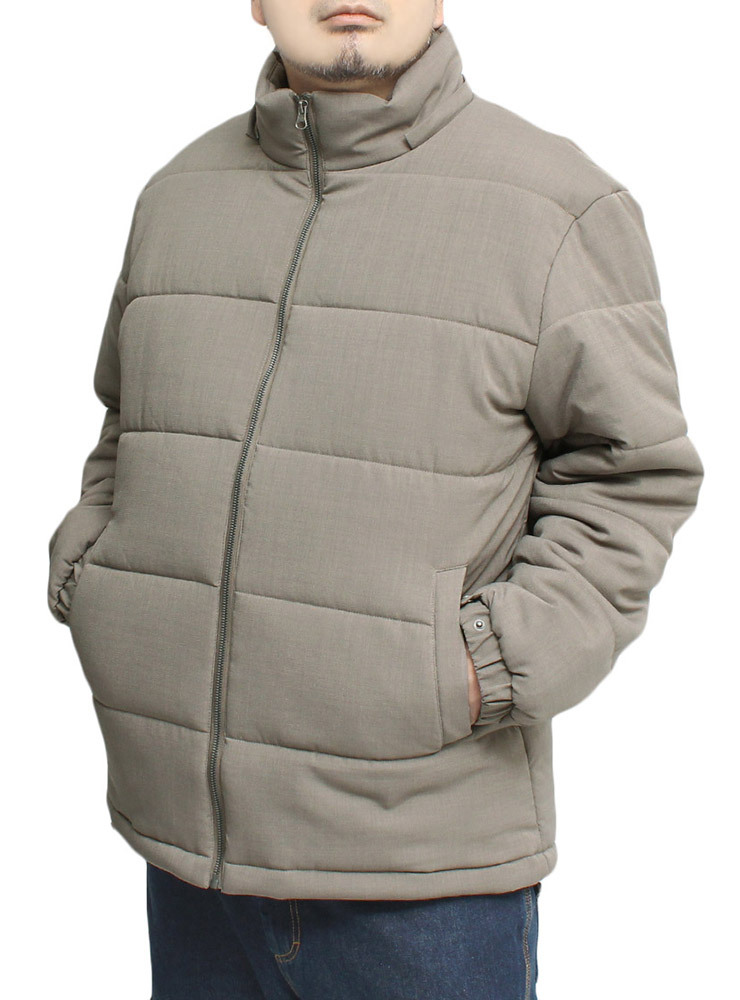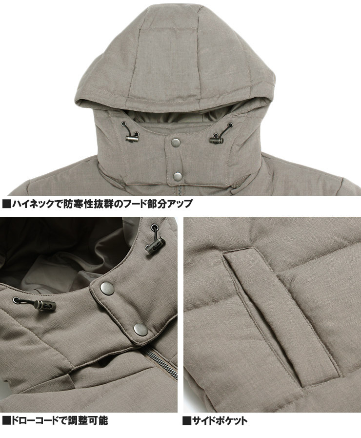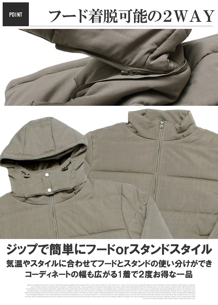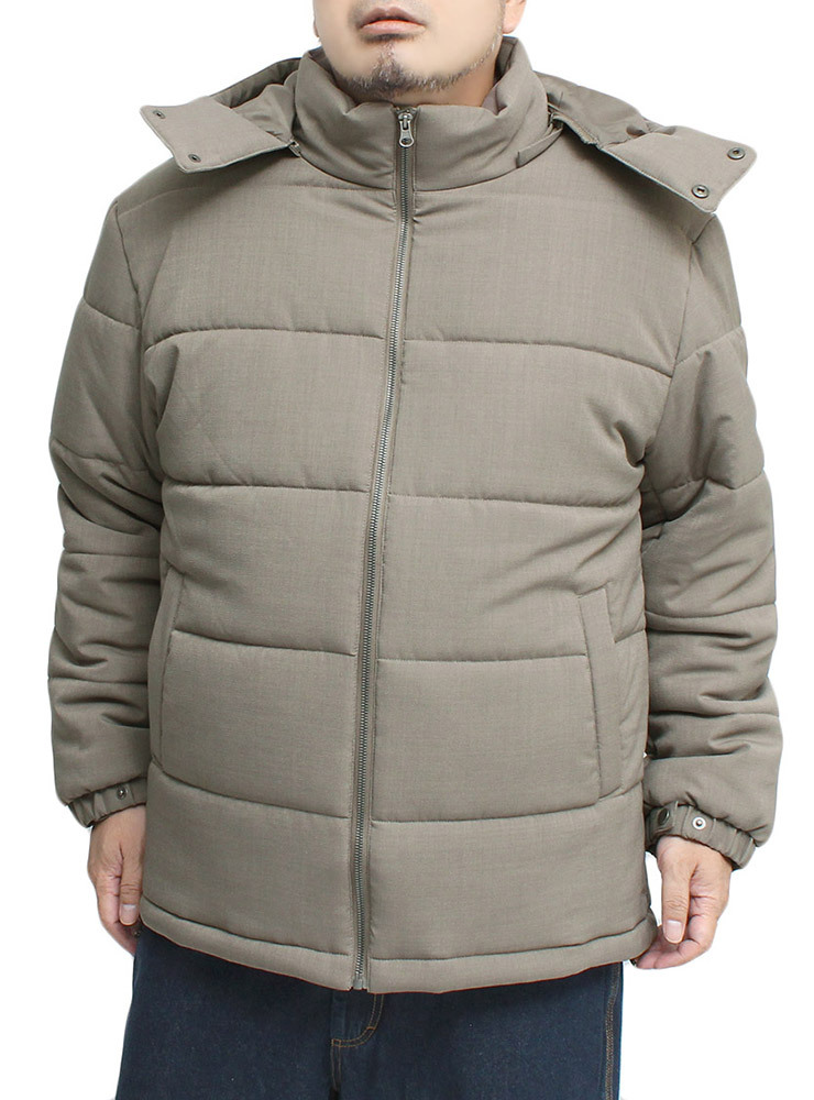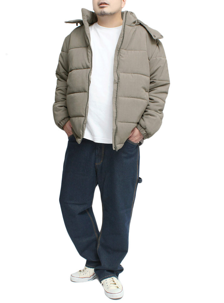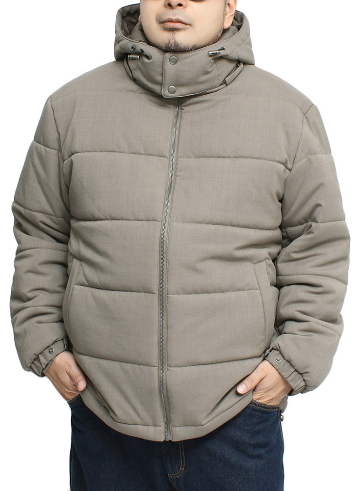 商品名 | 【新品】 3L ベージュ 中綿 ダウンジャケット メンズ 大きいサイズ フード脱着 防寒 厚手 ジップアップ ボリュームネック ブルゾン |