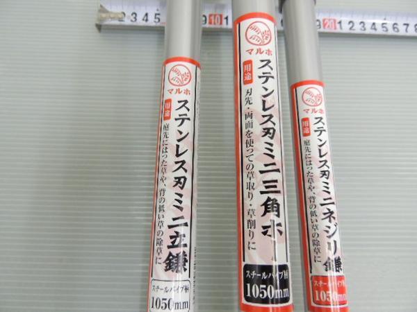 ステンレス刃パイプ柄ミニ立鎌・ミニ三角ホー・ミニネジリ鎌3点 | |