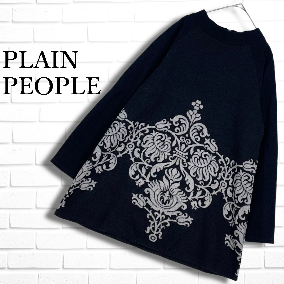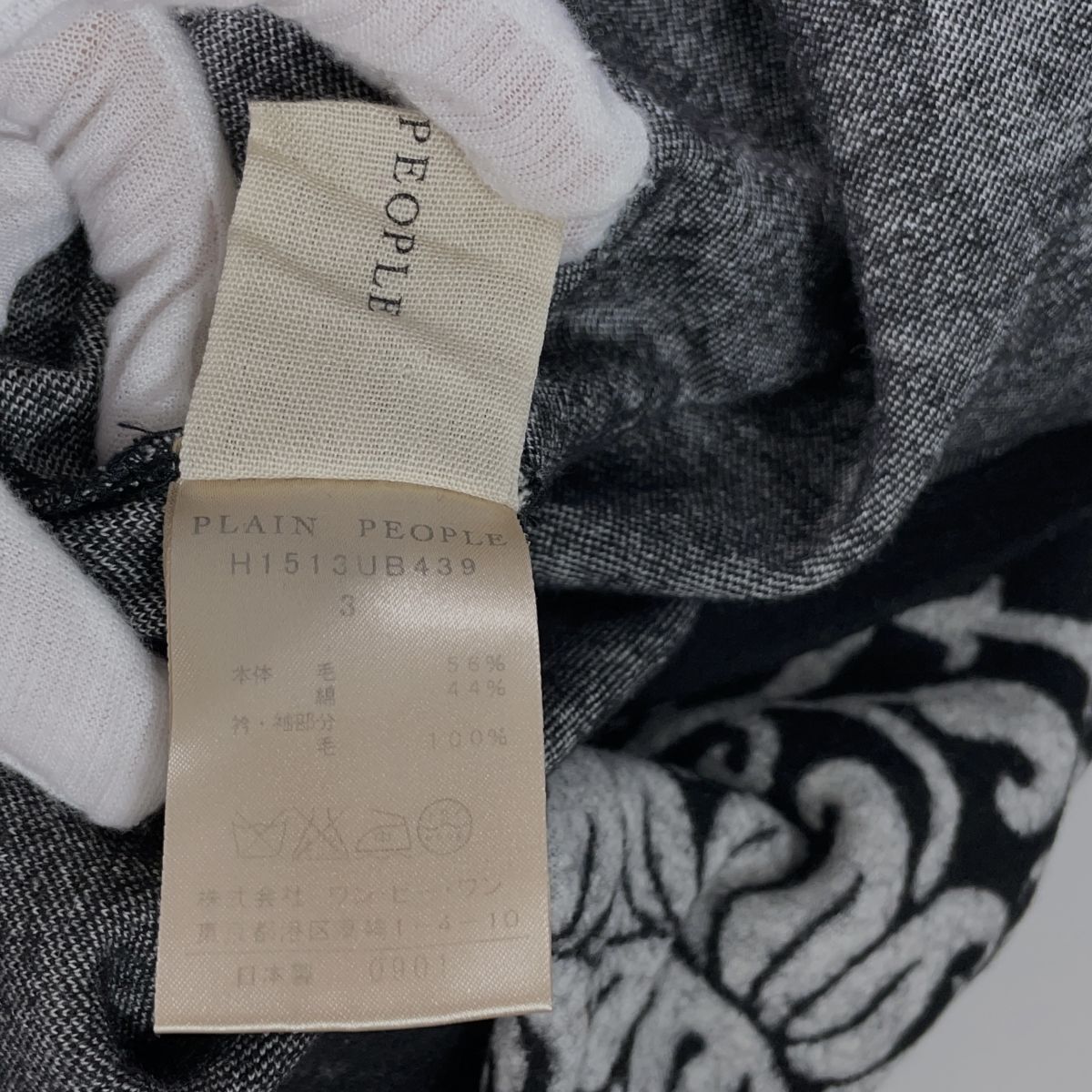 ◆良品◆ PLAIN PEOPLE プレインピープル 柄 ウール ゆったり♪ 長袖 プルオーバー チュニック 黒 × グレー レディース 3 日本製 3315F◇