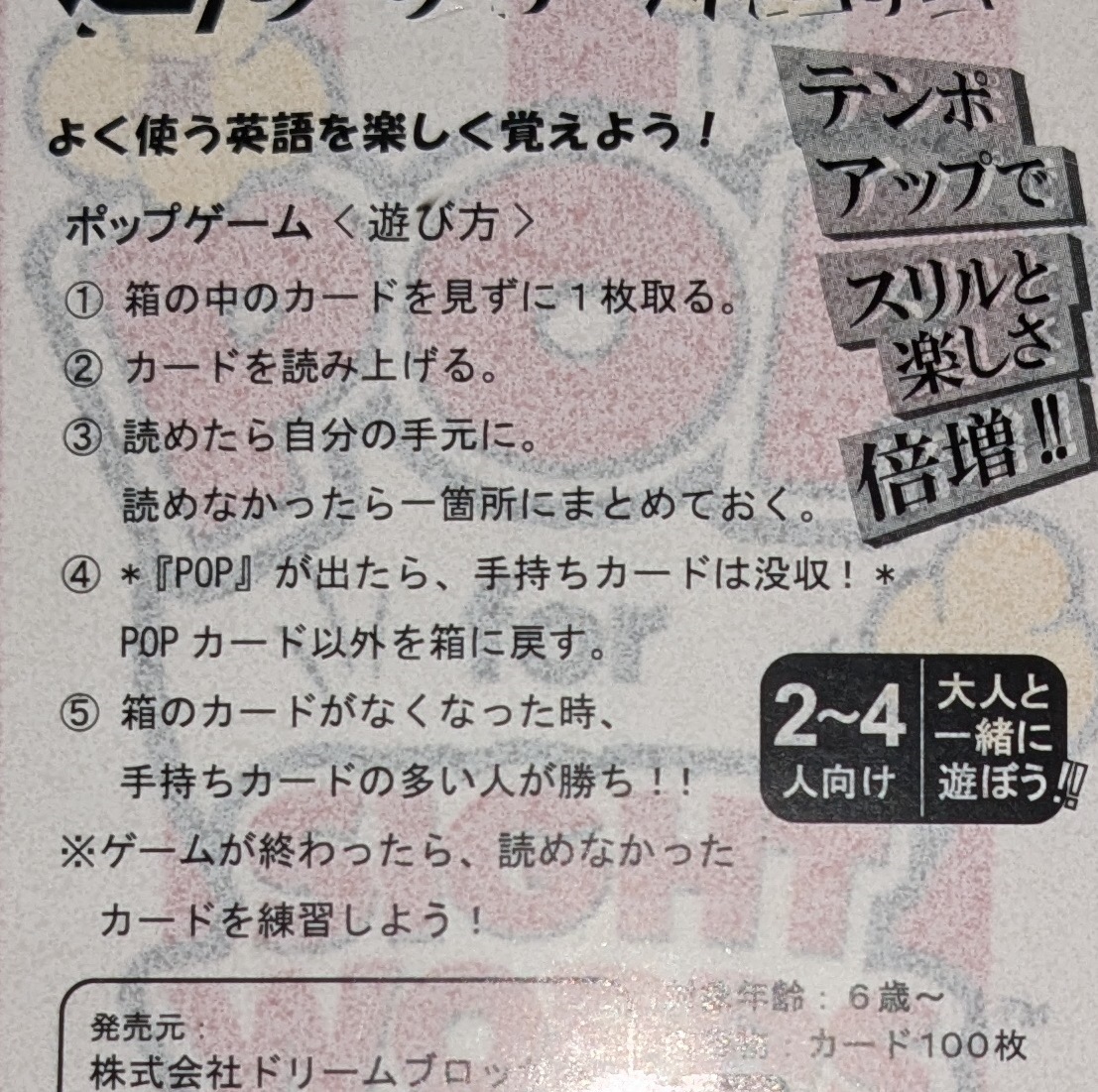 外国製で説明書にも日本語は書かれていませんが、遊び方について箱の側面に日本語の簡易説明が貼られています。