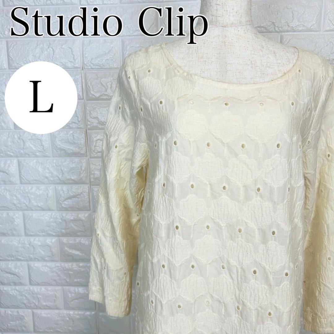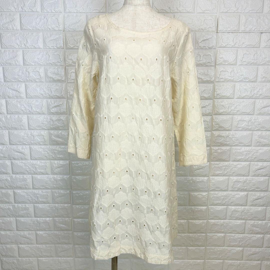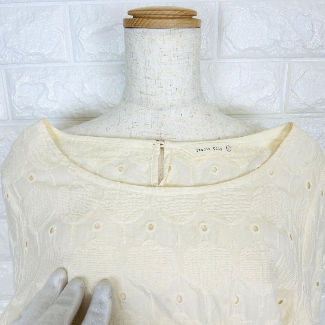 【AA1466】 Studio Clip スタディオクリップ L コットンワンピース 刺繍レース ナチュラル 春夏 アイボリー 長袖 フェミニン