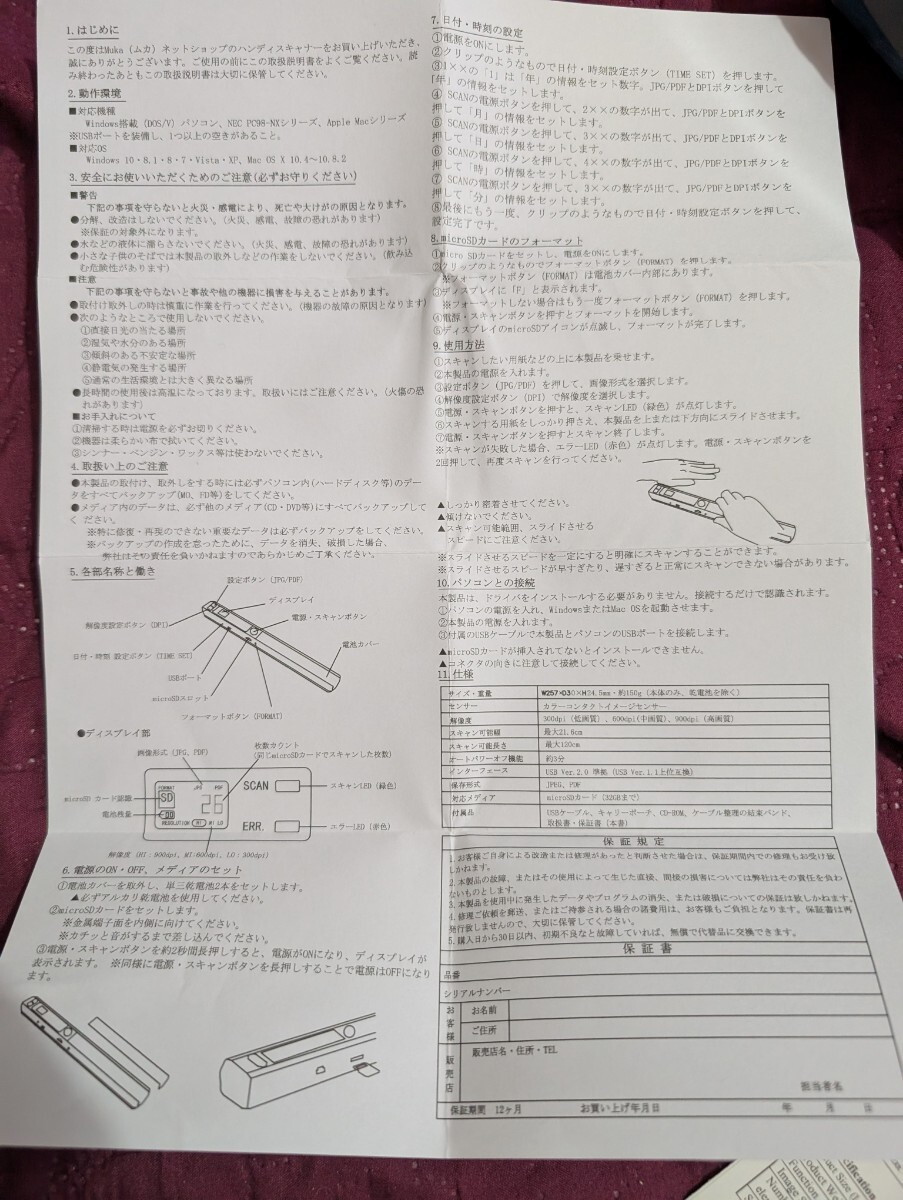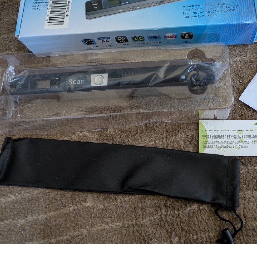 最大900dpiの解像度でJPEG/PDF形式にスキャン可能なハンディスキャナー。- モデル名: iScan- タイプ: ハンディスキャナー- スキャン解像度: 最大900dpi- 電源: 2x AA電池- ファイル形式: JPEG/PDF- ページ数: 200ページ以上ご覧いただきありがとうございます。よろしくお願い致します。未使用です。動作確認してませんので現状渡しジャンク扱いでお願い致します箱は折りたたむか破棄してクリックポストで発送予定ですすり替え防止の為返品は、出来ませんので…ご理解よろしくお願い致します。