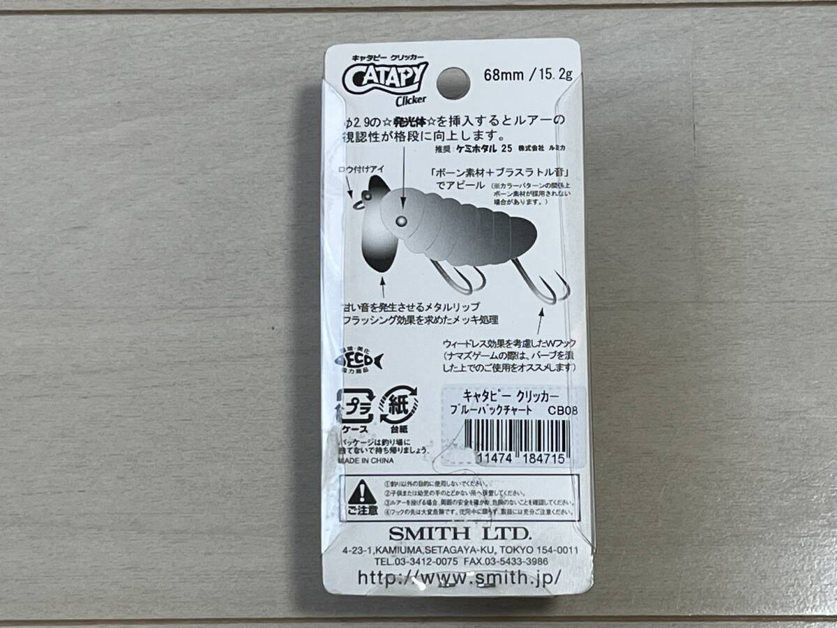 スミス キャタピー クリッカー ブルーバックチャートシ SMITH CATAPY Cliker ナマズ 未使用品の出品になります。 商品の状態や付属品は画像にてご確認下さい。 パッケージに擦れ等ございますが、未開封品です。 出品前に一通り確認しておりますが、見落としている傷などあるかもしれませんので、入札される際は、あくまで中古品ということを理解したうえで入札していただきますようお願いします。 また、個人の主観や人によって捉え方も違いますので、新品や、完璧を求められる方は入札をお控え下さい。