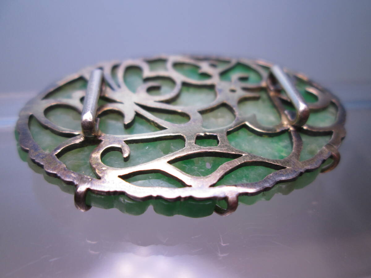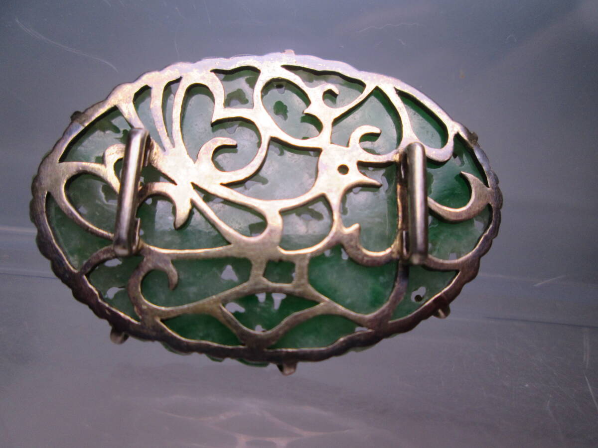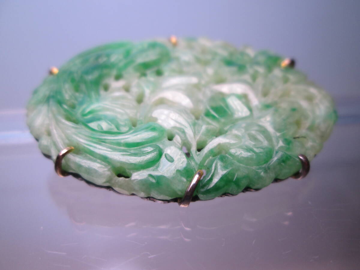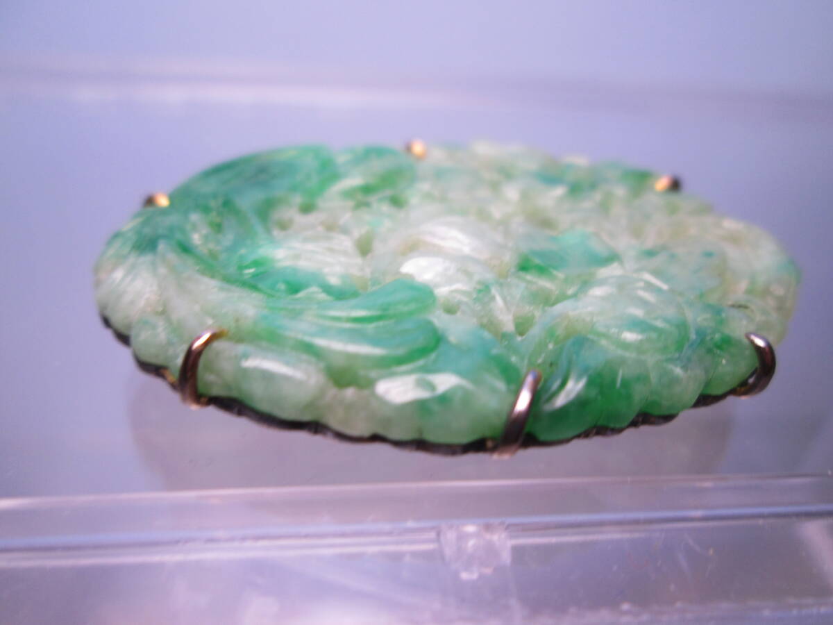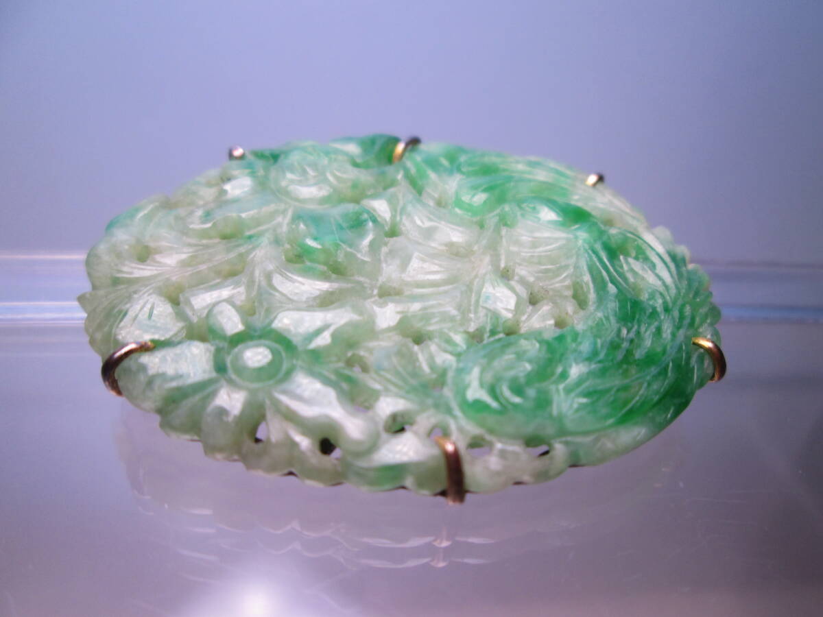 【江月】 アンティーク・本翡翠 鳳凰に花透かし彫刻の帯留め 11,9g