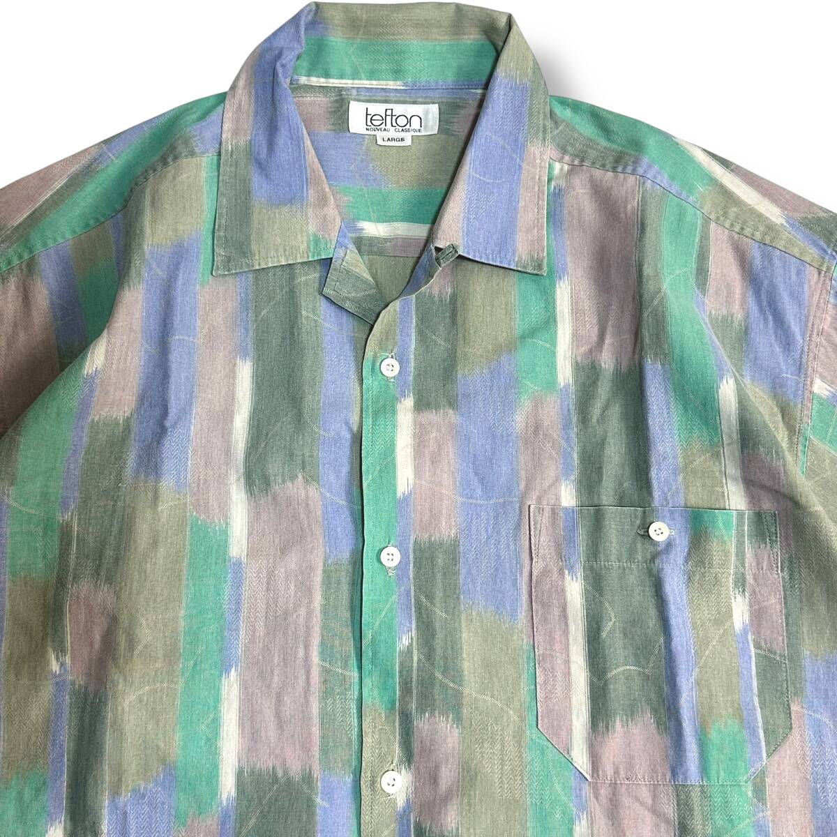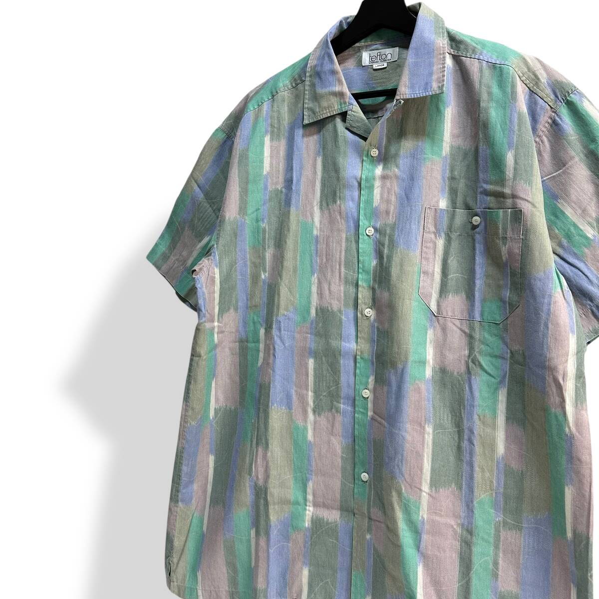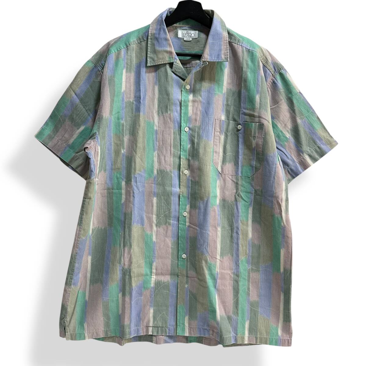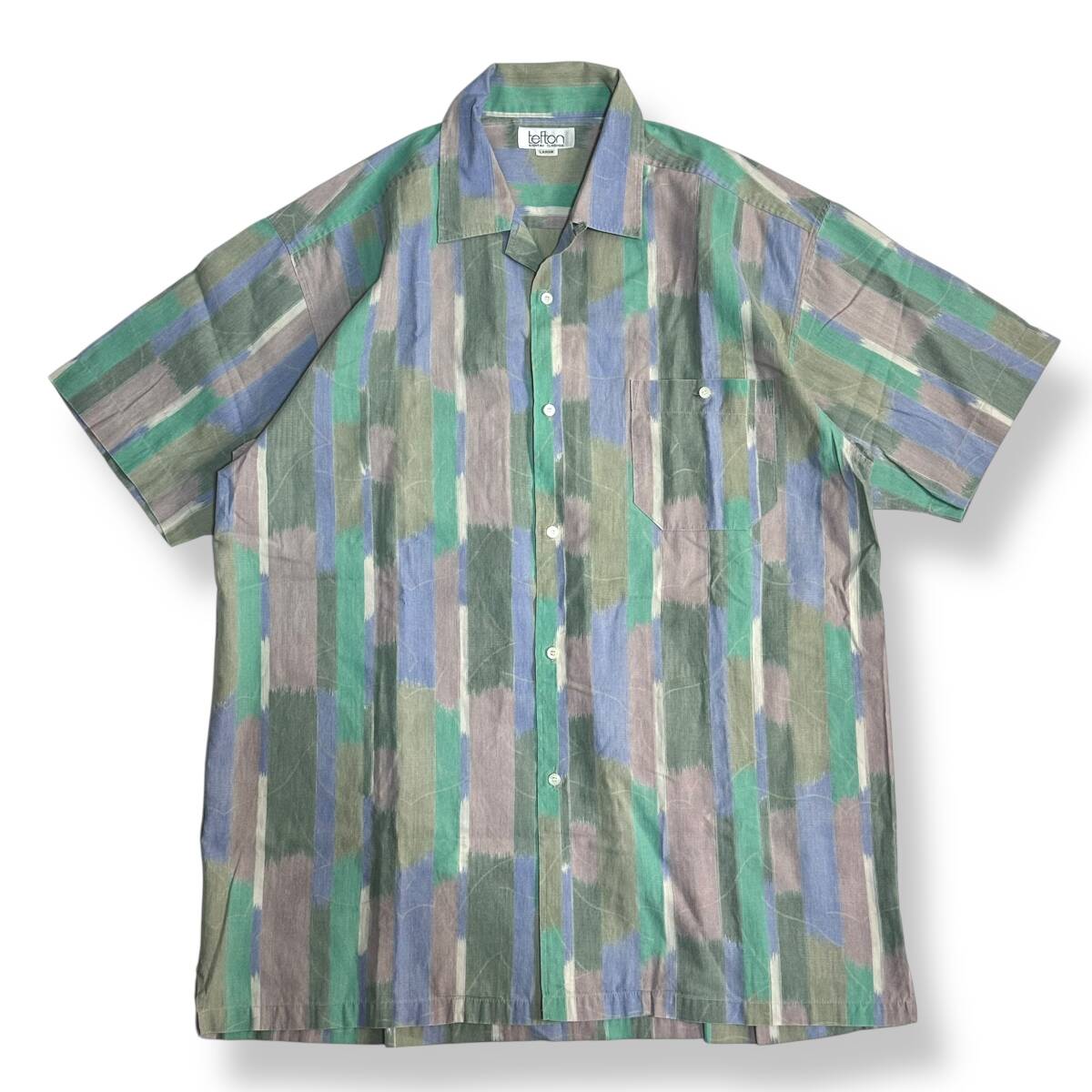 秀逸 貴重【TEFTON】VINTAGE 80s 90s 総柄 アート グラフィック ビンテージオープンカラーシャツ オールド レトロ古着 日本製