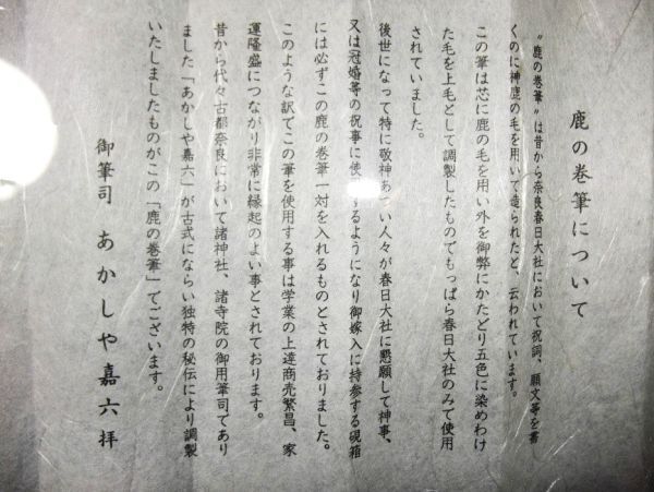 奈良あかしや 鹿 巻筆 御筆司 あかしや嘉六