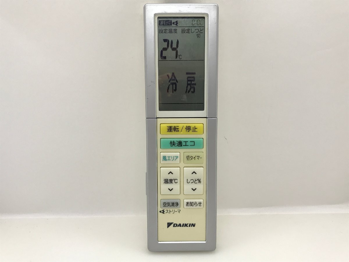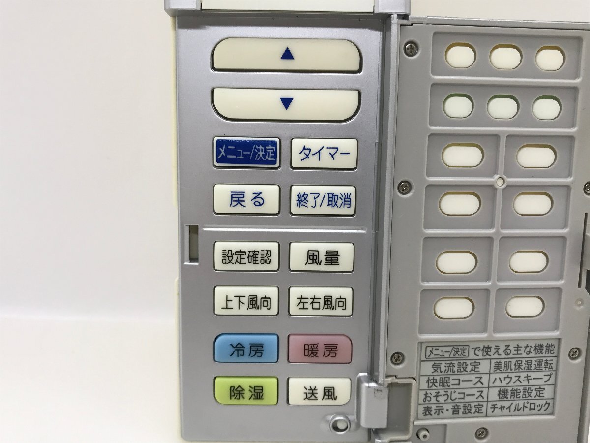 (エアコンリモコンの場合、正面からだとディスプレイ表示が薄い仕様のものもございます。不具合ではございません。)