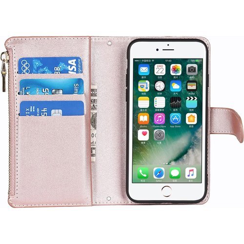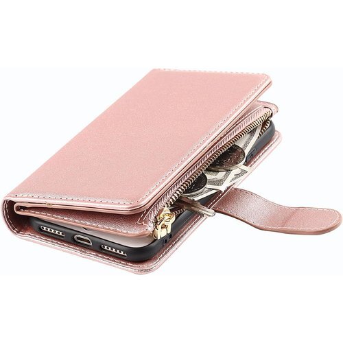 Eastwave アイフォン SE 2022 第3世代 ケース iPhoneSE 2020 第2世代 手帳型 iPhone 8 7 ケース 縄掛け 財布型 ICカード コインポケット ストラップ付き カード 収納 小銭入れ ファスナーポケット付き PUレザー 6色 ピンク 1056