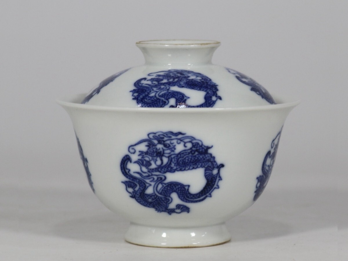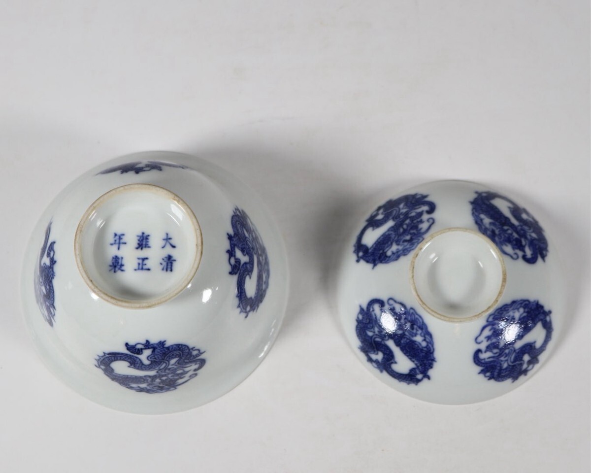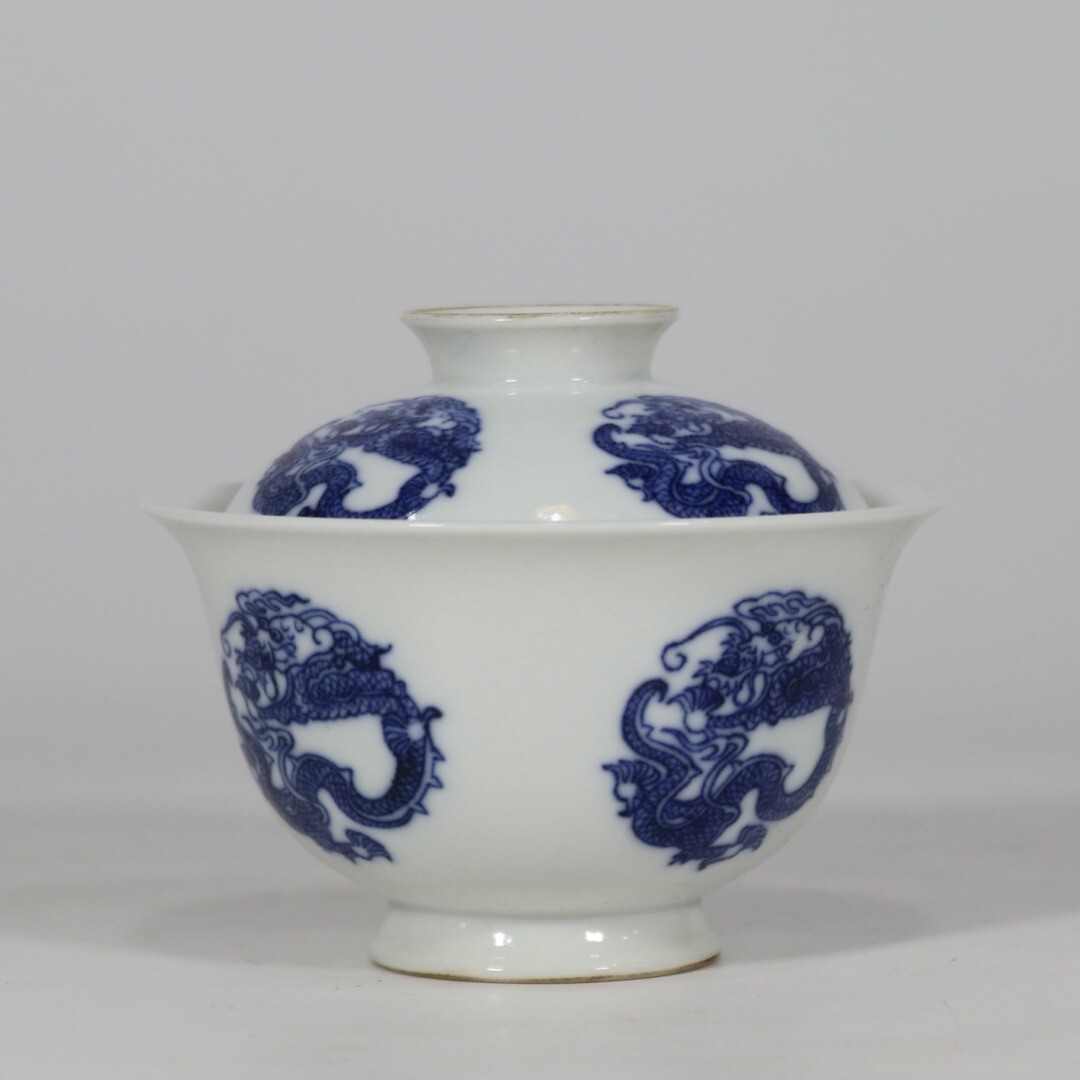 清代 大清雍正年製 陶磁器 青花淡描団龍紋 蓋碗【仁】染付 置物擺件 古賞物 古美術 中国古玩 蔵出