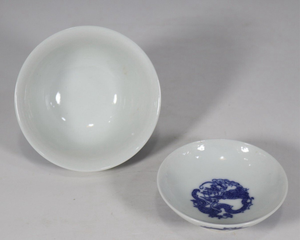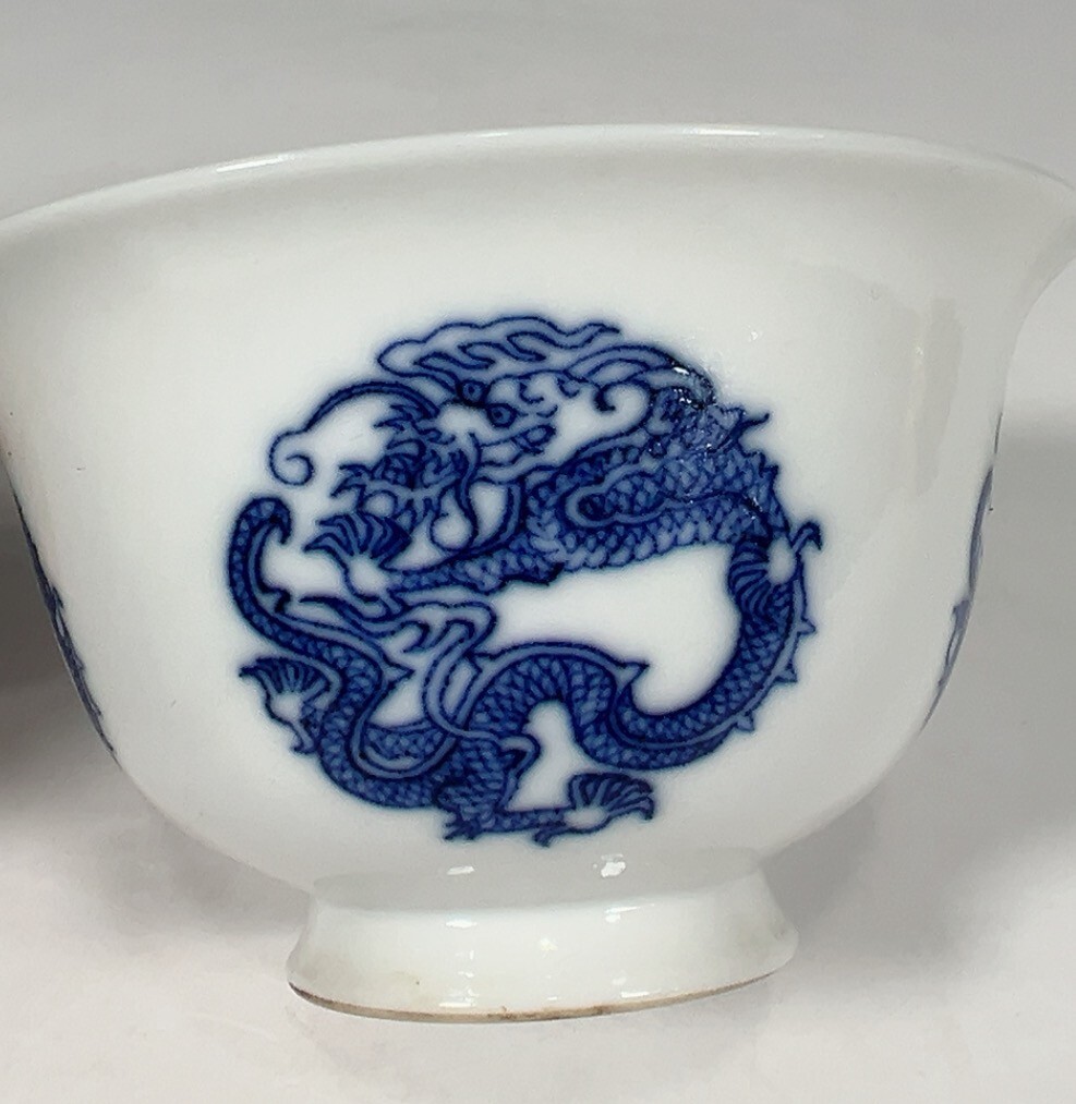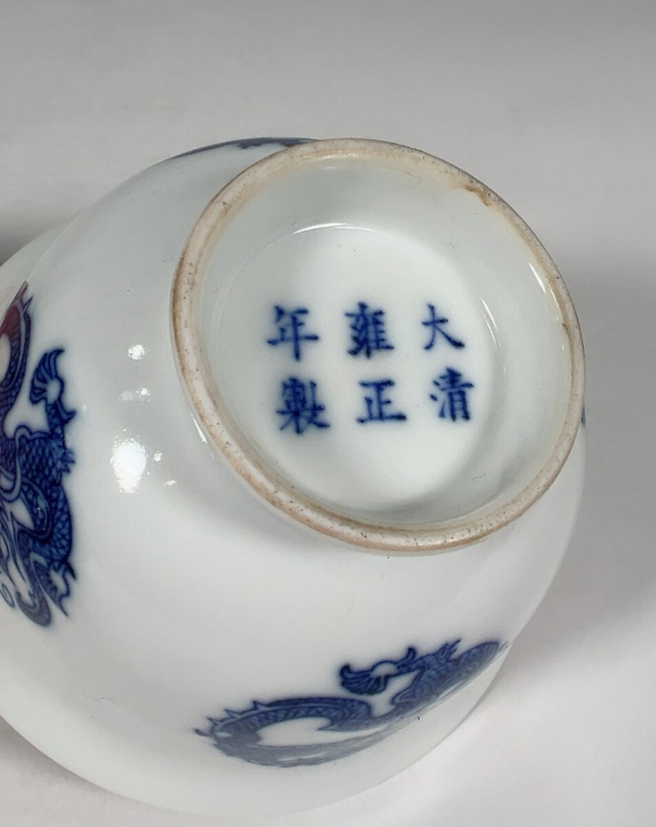 清代 大清雍正年製 陶磁器 青花淡描団龍紋 蓋碗【仁】染付 置物擺件 古賞物 古美術 中国古玩 蔵出