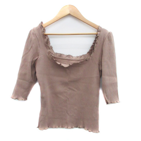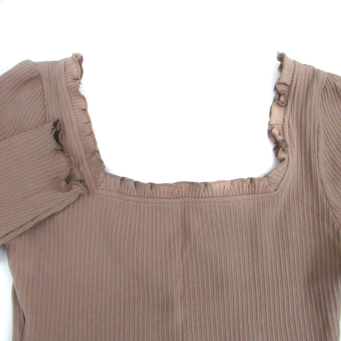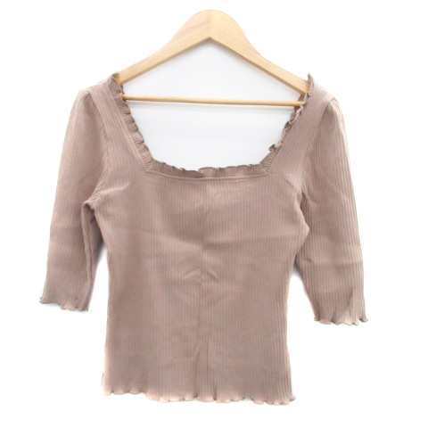 スピック&スパン Spick&Span カットソー スクエアネック 五分袖 フリル 茶色 ブラウン /HO2 レディース