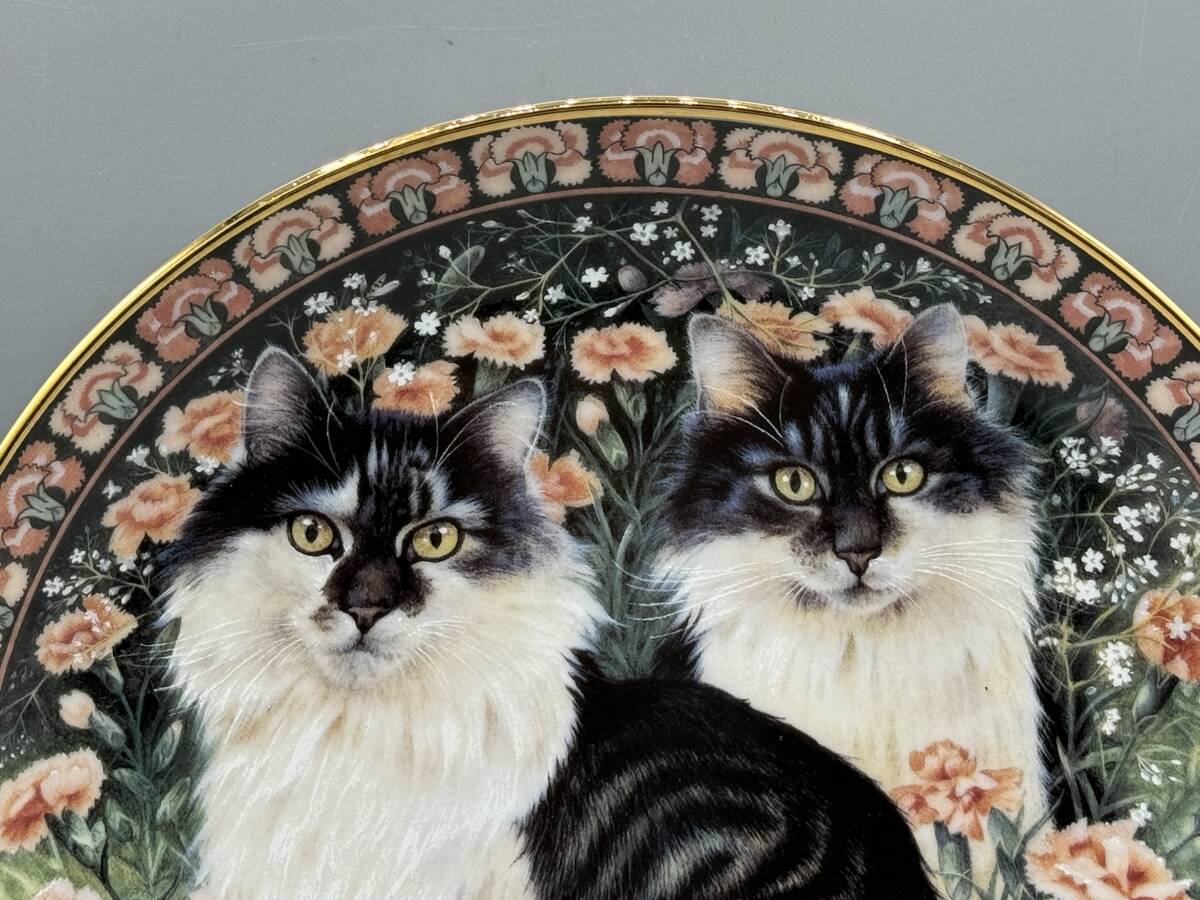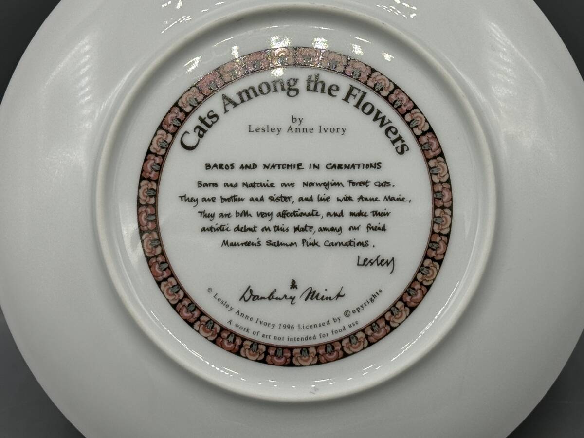 ダンブリーミント レズリー レスリー アン アイボリー カーネーション ネコ 絵皿 飾り皿 お花 囲まれた ねこ 猫 (#-17)