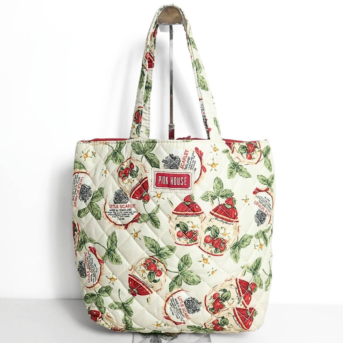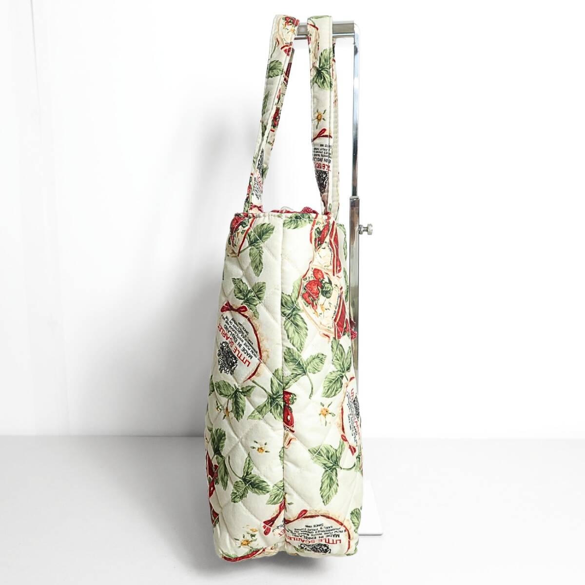 商品説明 | 【実寸約】縦28横24.5マチ12(cm) 【状態】普通の着用感あるお品物~状態良好で美品の域に入るお品物 【デザイン】生成り色~オフ白系 苺ジャムプリントが可愛いキルティング生地の 可愛いハンドトートバッグです |