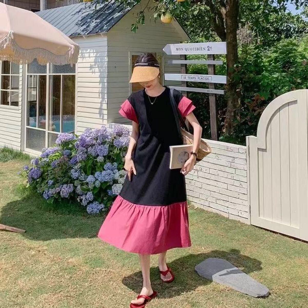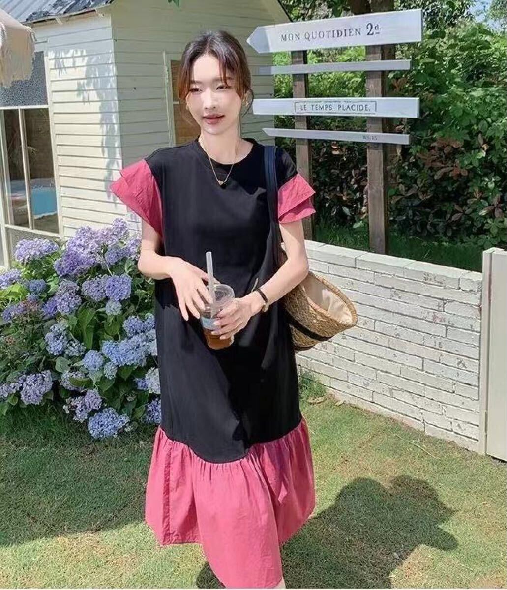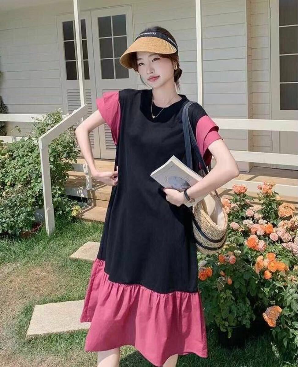 ロングワンピース 切替ワンピース 大きいサイズ レディース ロング tシャツワンピ ロングワンピース レディースワンピース ゆったりワンピース 夏 ロング 半袖 おしゃれ かわいい 可愛い LWGA074(M-4XL)