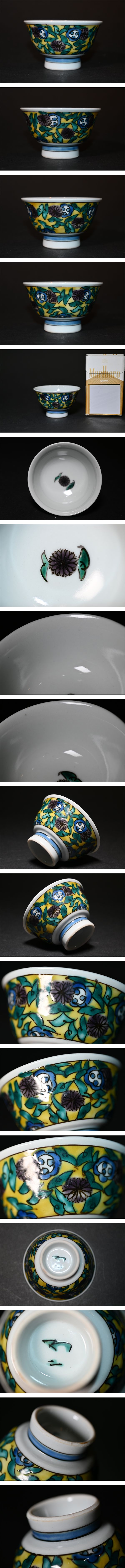 真贋保証■北出不二雄 作■ 色絵艸文 盃 箱無 九谷焼 北出塔次郎に師事 草文 酒器 酒杯 酒盃 ぐい呑 | |||