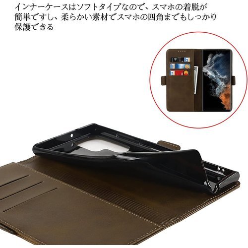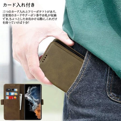 S22 Ultra ケース 手帳型 Galaxy S2 カード入れ スタンド機能 落ち着いた色 レトロ グリーン 1172