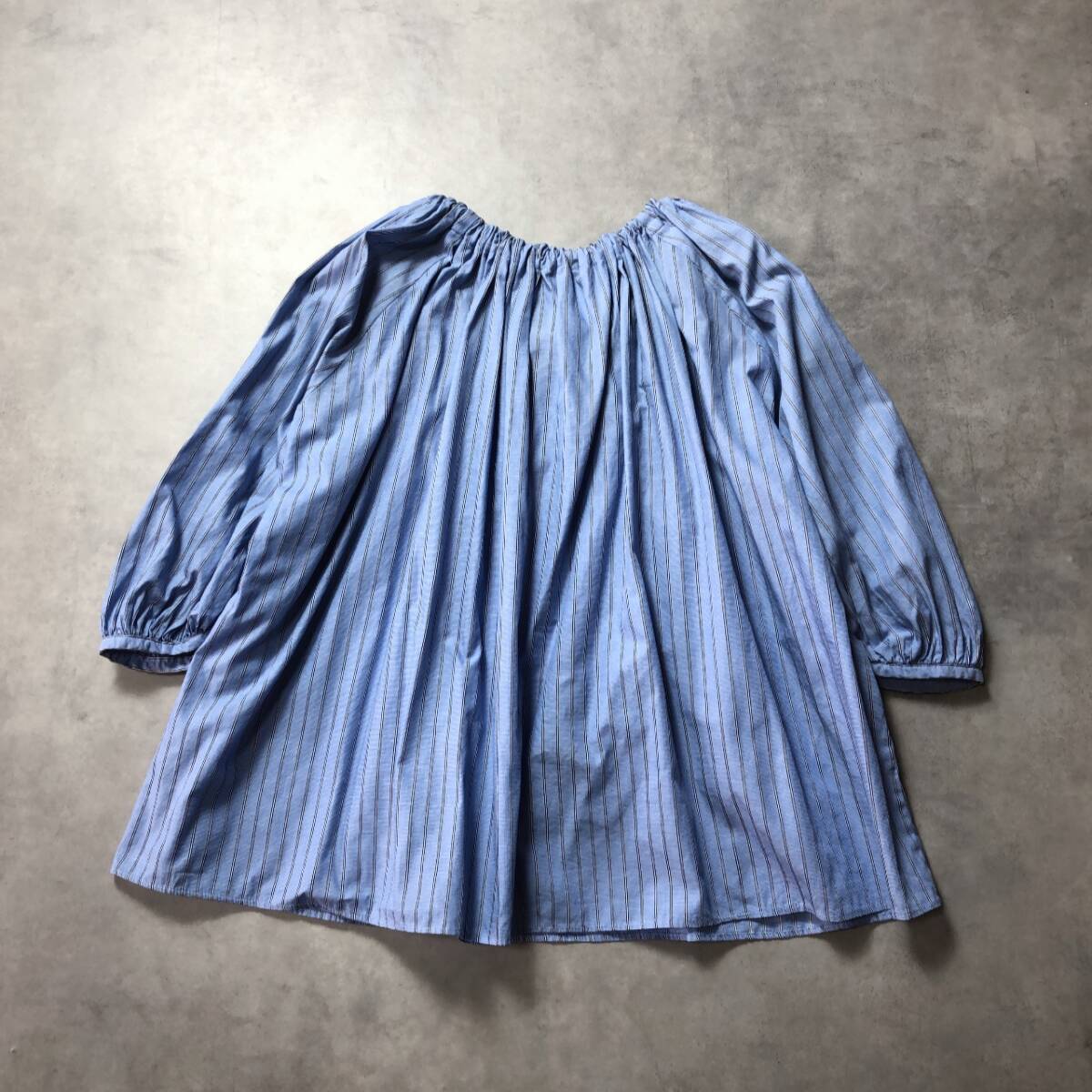 WQ474●Deuxime Classe:バルーンスリーブギャザーストライプシャツ ブルー ドゥーズィエムクラス