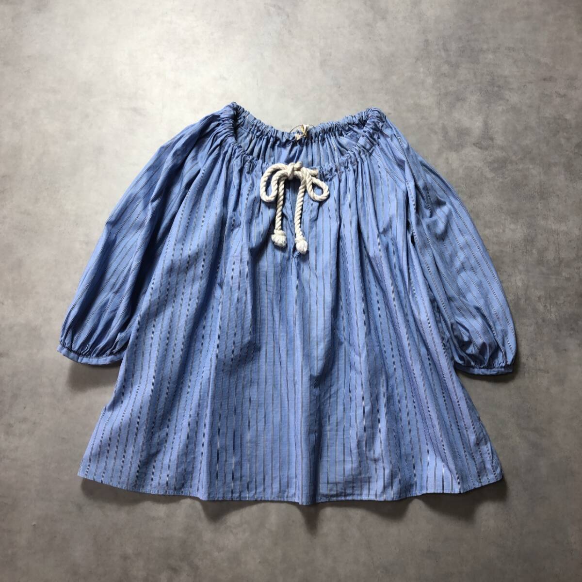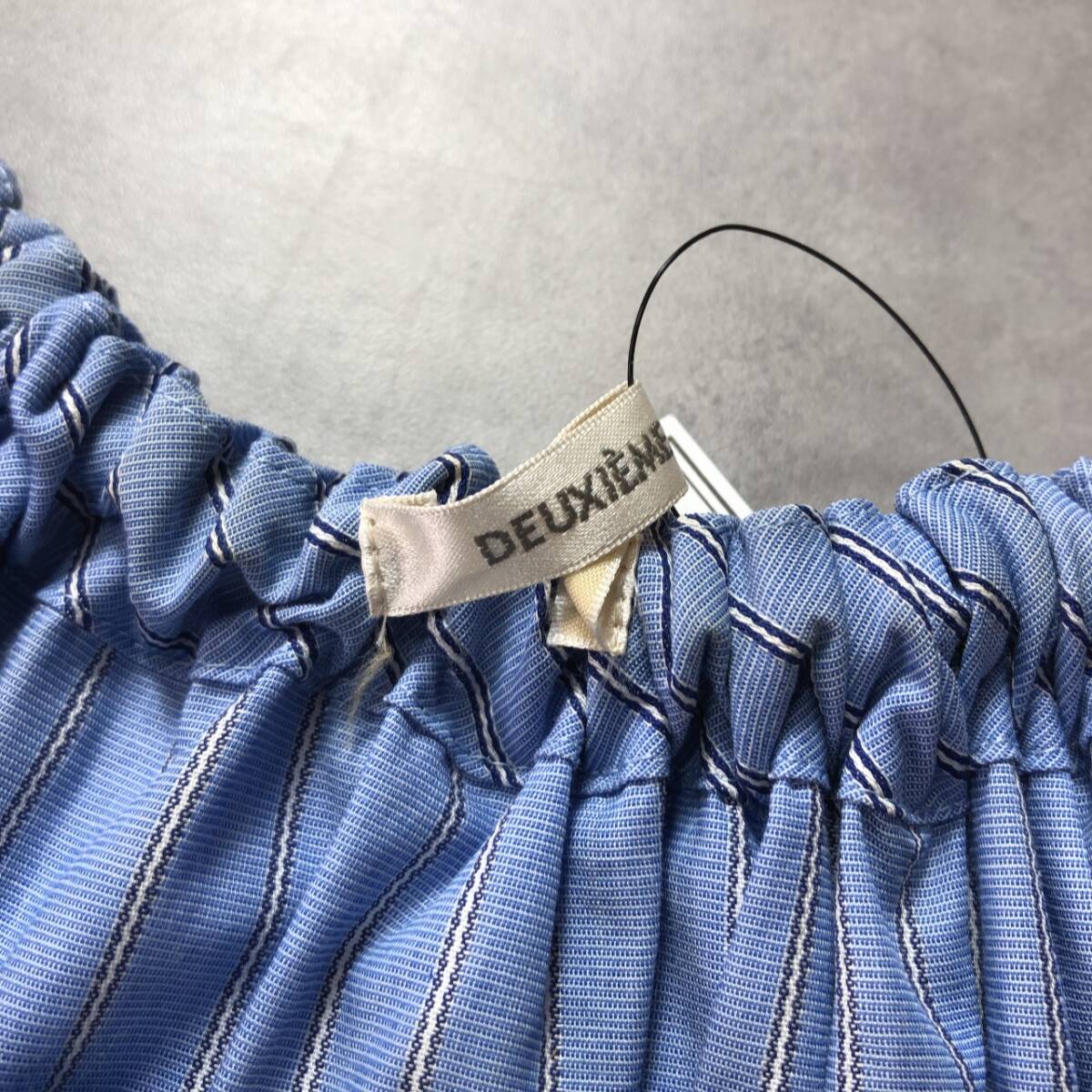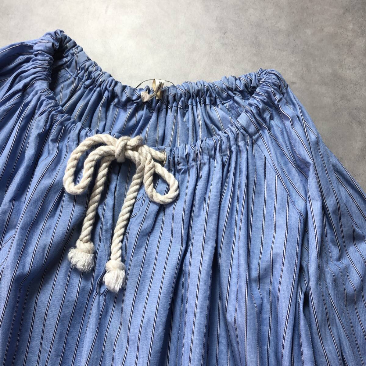 商品名 :WQ474●Deuxime Classe:バルーンスリーブギャザーストライプシャツ ブルー ドゥーズィエムクラス