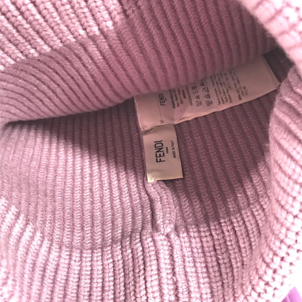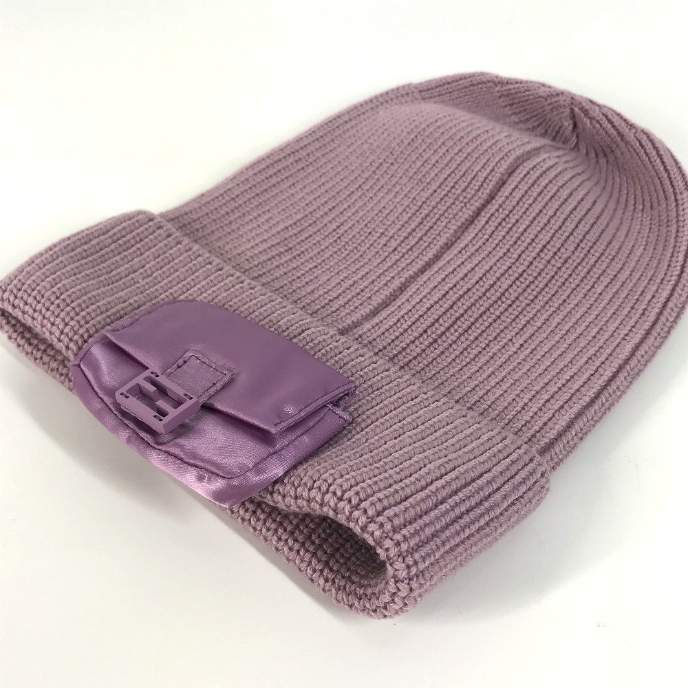 美品 FENDI フェンディ FXQ938 ロゴ ポケット付き ビーニー 帽子 ニット帽 ニットキャップ ニット帽 パープル レディース【中古】