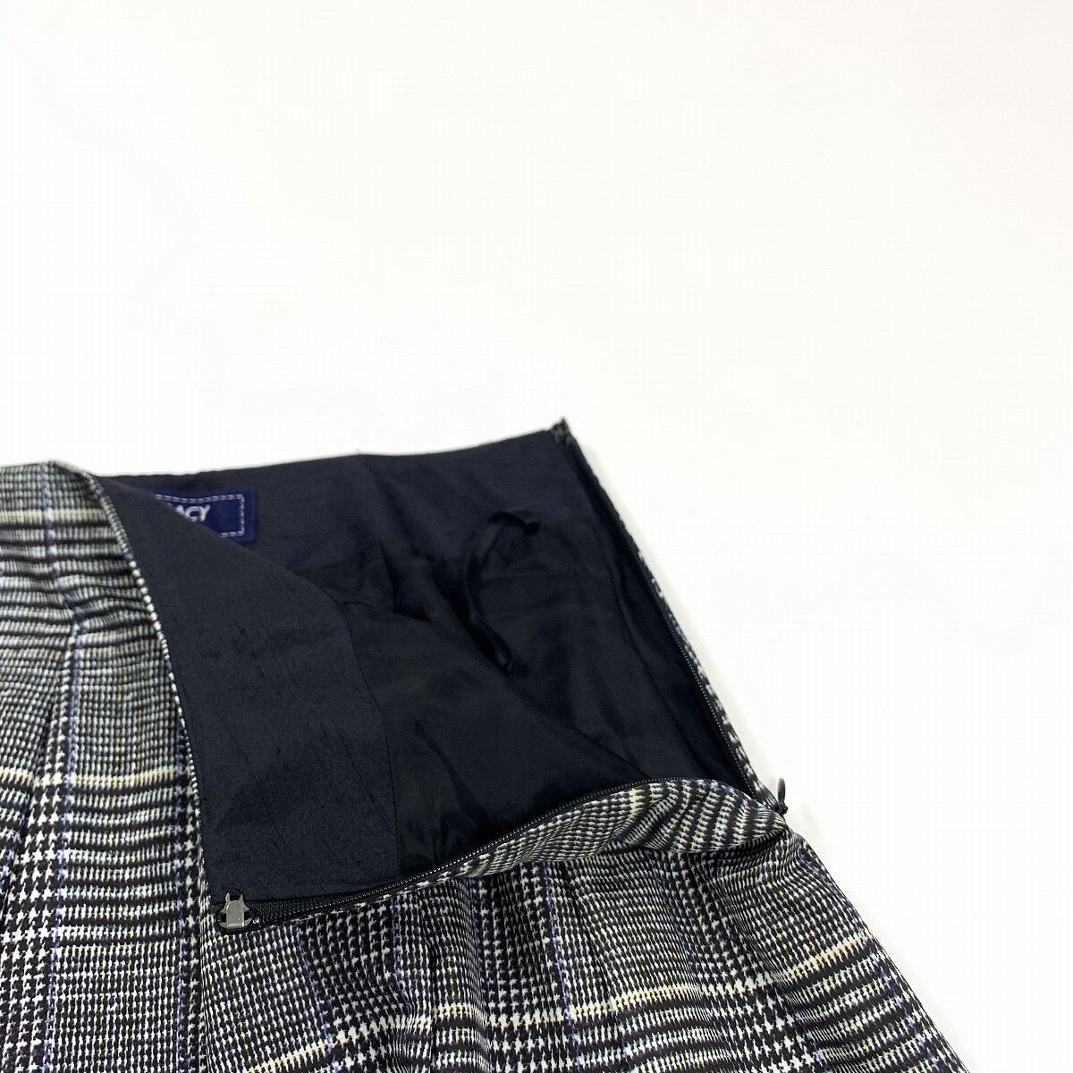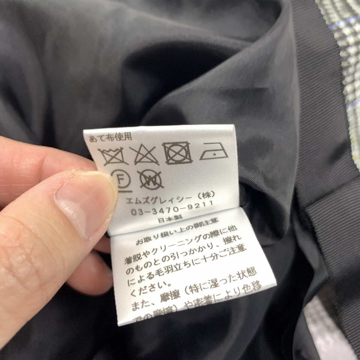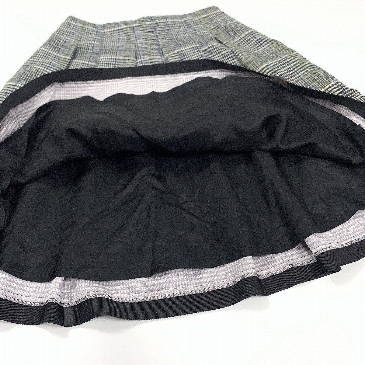 M'S GRACY エムズグレイシー ひざ丈スカート フレア 裏地あり チェック リボン 黒 グレー ブラック 36 YC487
