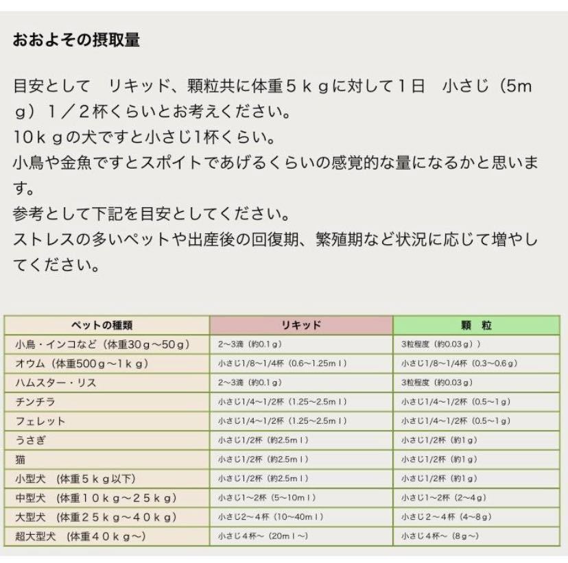 ●摂取量: 写真をご覧ください