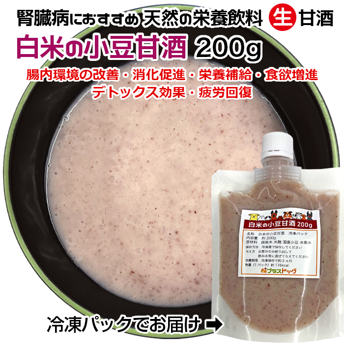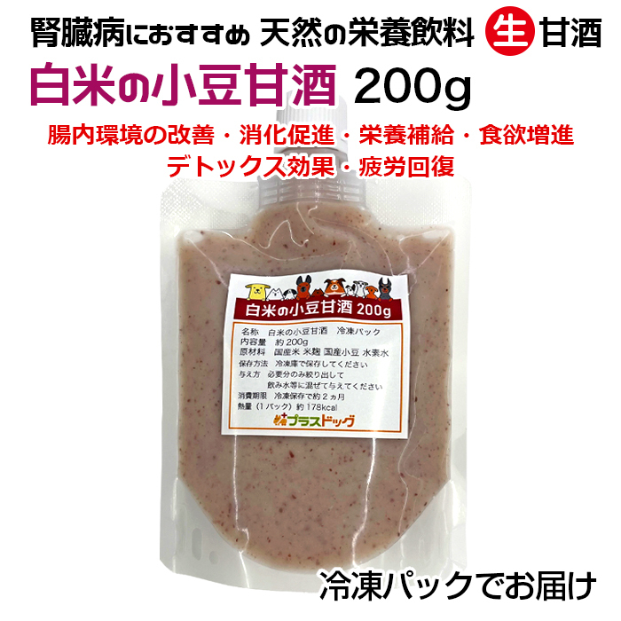 犬用・猫用 腎臓病におすすめ 天然の栄養飲料 生甘酒 白米の小豆甘酒 200g 冷凍パック【クール便発送】犬 猫 手作りごはん