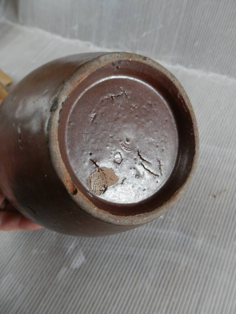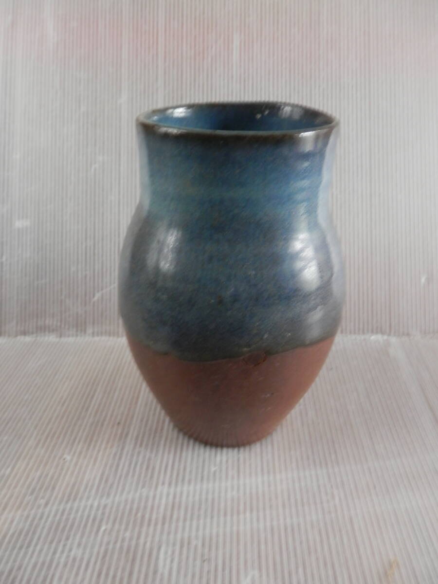 秋田楢岡焼 白岩焼 掛分釉瓶 花瓶(19cm) フラワーベース 花入 花生 華道*0625
