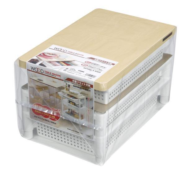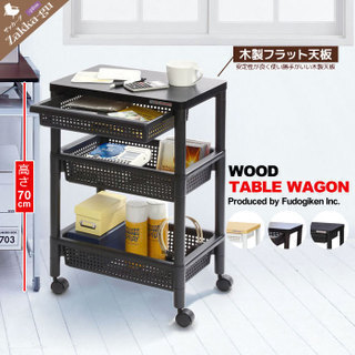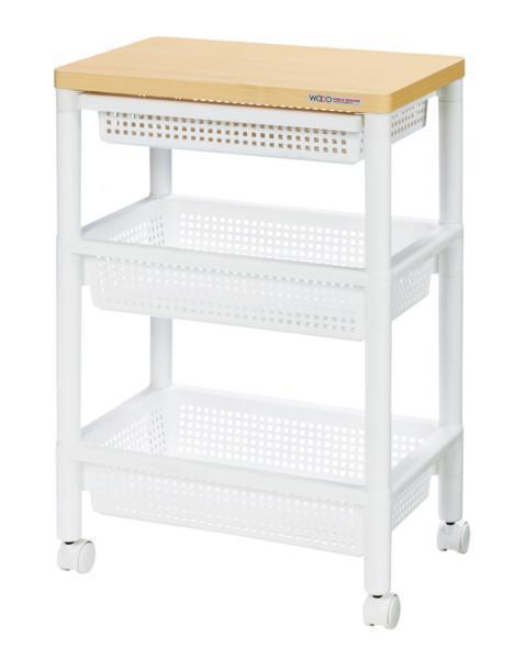 商品名 | 木製フラット天板 引き出しバスケット付き ウッドテーブルワゴン 3段 高さ70 ホワイト M5-MGKFU1417WH |