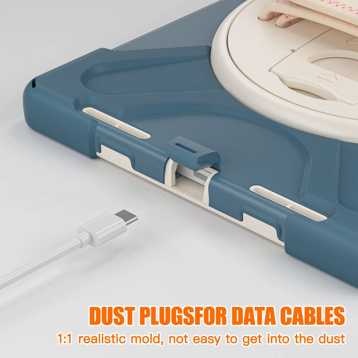 斜め掛け iPad第11世代 11インチ iPad第10世代 10.9インチ ケース 360°回転 スタンド ショルダーストラップ ハンドベルト iPad 10 /iPad 11 2025ケース ペンホルダー付き 頑丈 お洒落 格好いい 耐衝撃 シリコン キッズ (iPad 10(2022), 灰ブルー)