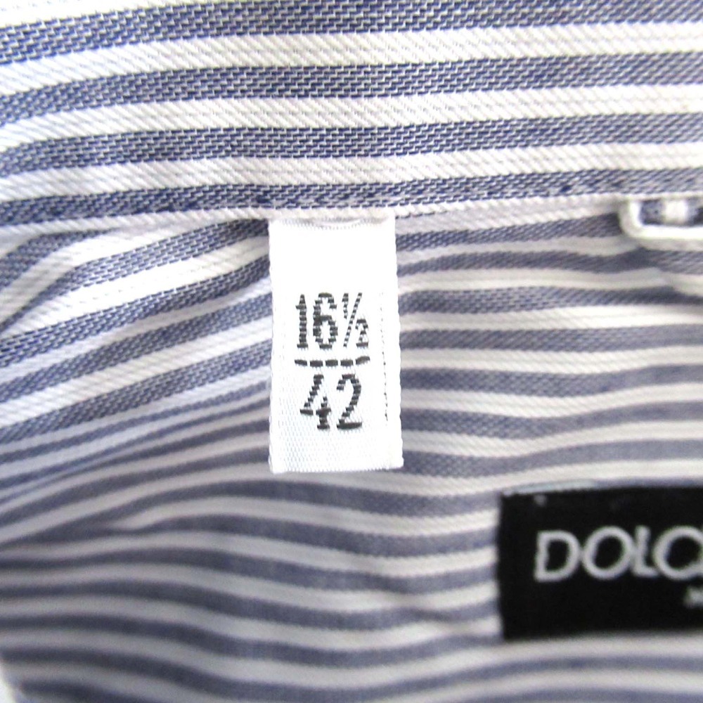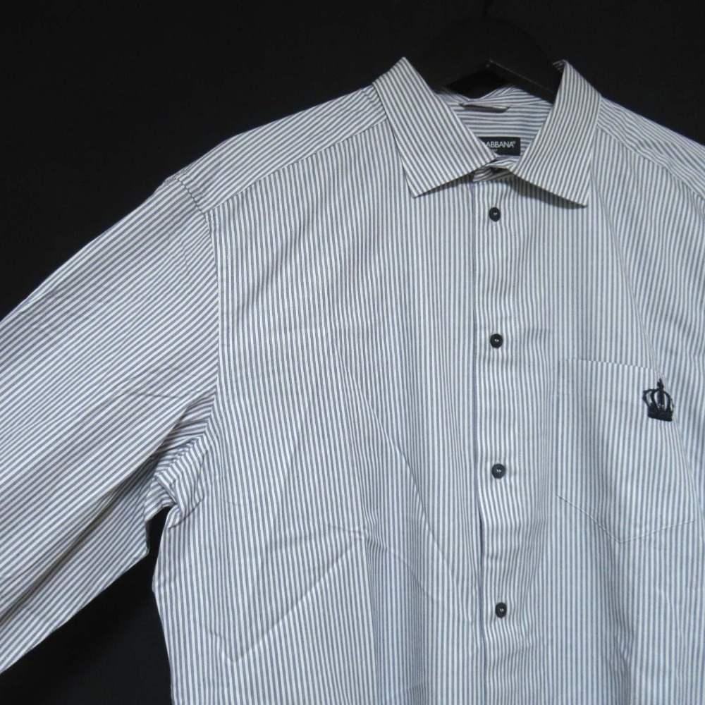 美品 クリーニング済 DOLCE&GABBANA ドルチェ&ガッバーナ ストライプ柄 クラウン刺繍 長袖 シャツ 42 ネイビー ホワイト