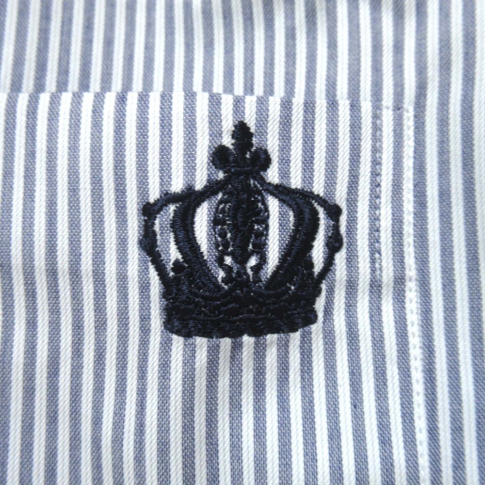 商品名:クリーニング済 DOLCE&GABBANA ドルチェ&ガッバーナ ストライプ柄 クラウン刺繍 長袖 シャツ 42 ネイビー ホワイト